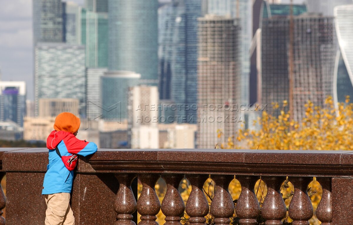 Осень в Москве. Горожане на фоне международного делового центра «Москва-Сити».
