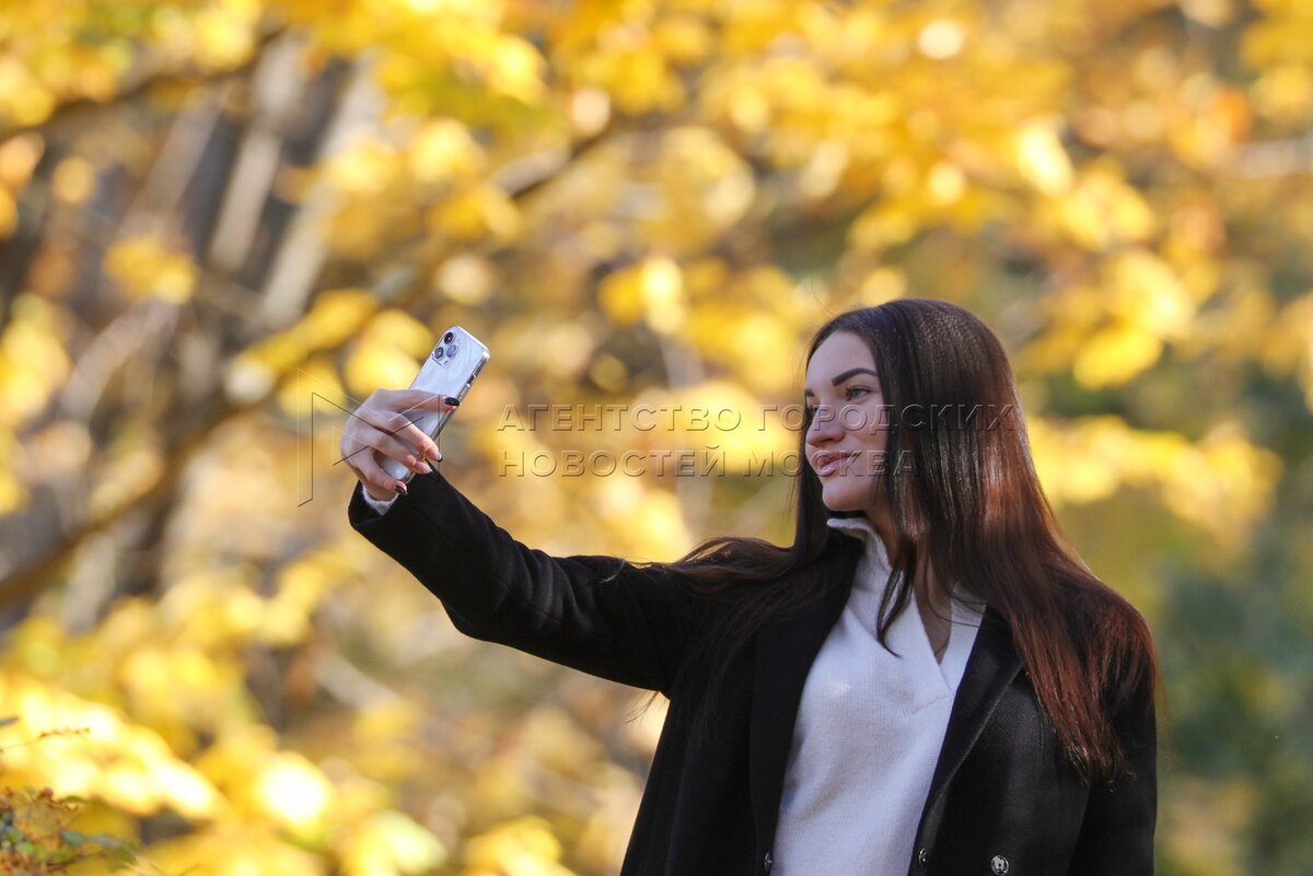 Осень в Москве. Горожанка делает селфи.