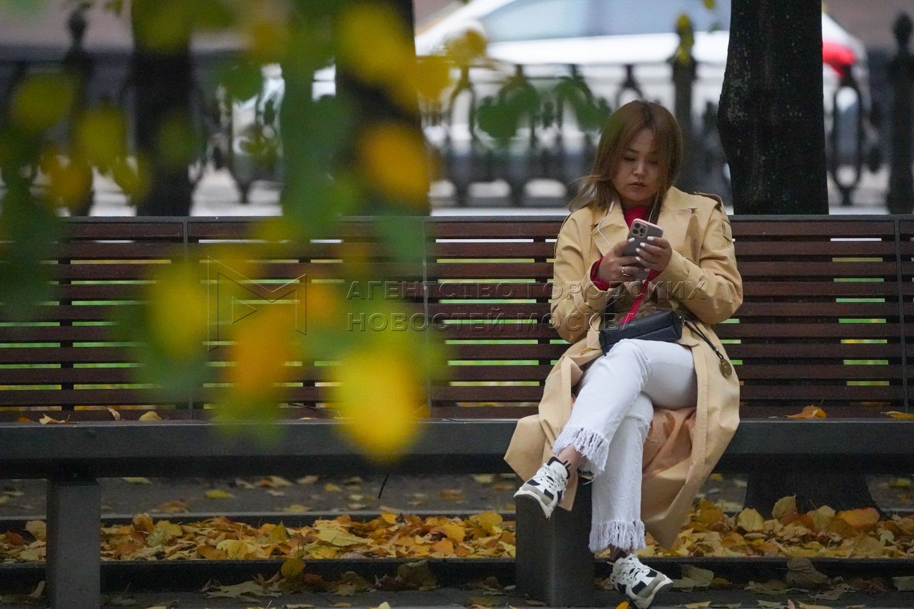 Осень в Москве. Горожанка с телефоном.