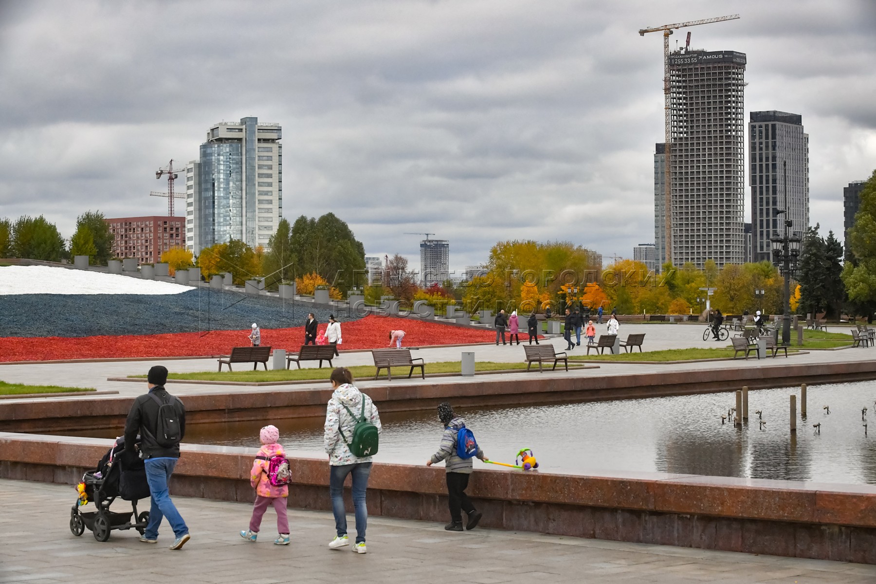 Осень в Москве. Горожане на фоне международного делового центра «Москва-Сити».