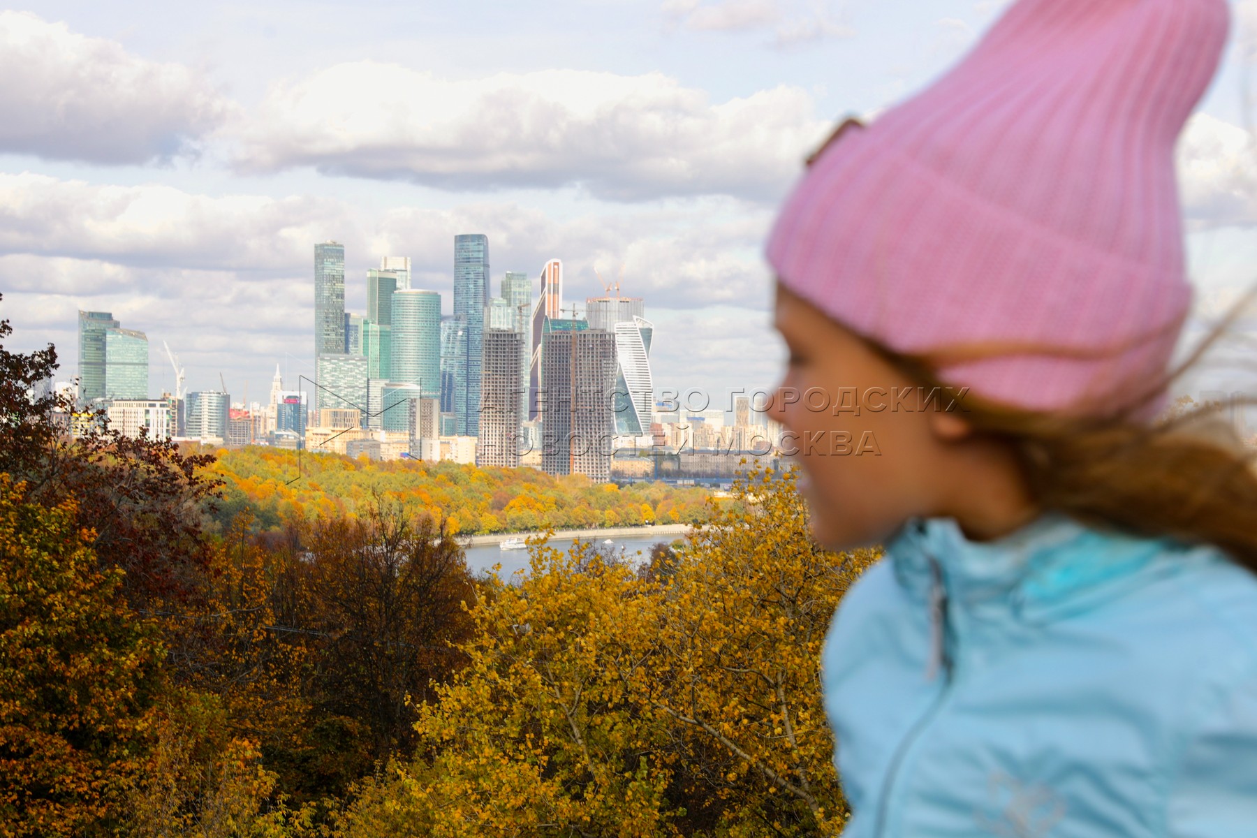 Осень в Москве. Горожане на фоне международного делового центра «Москва-Сити».