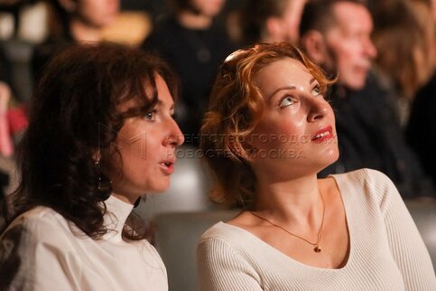 Актрисы Виктория Косенко (слева) и Евгения Лапина-Порватова во время сбора труппы...