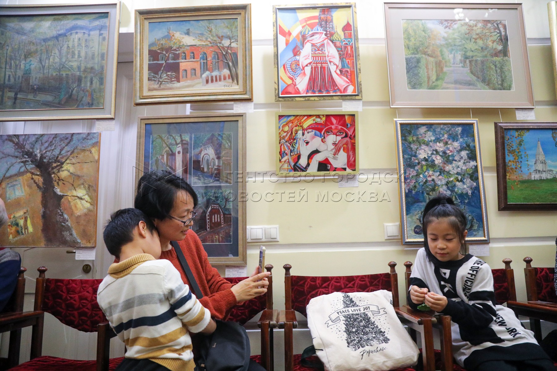 Вернисаж выставки «Московские истории» в Доме Нащокина. Выставка - коллективный п...