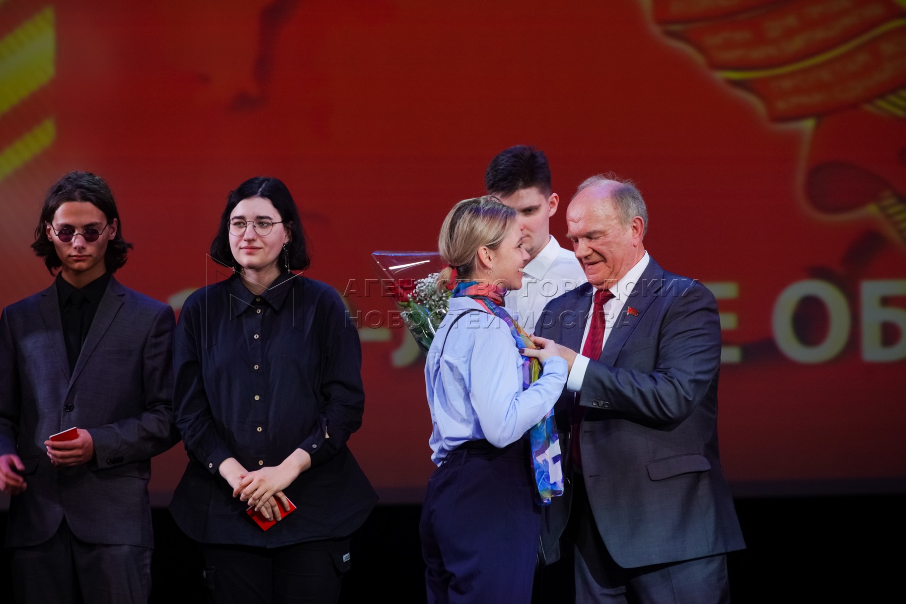 Лидер КПРФ Геннадий Зюганов (в центре) на праздничном концерте, посвященном 104-й...