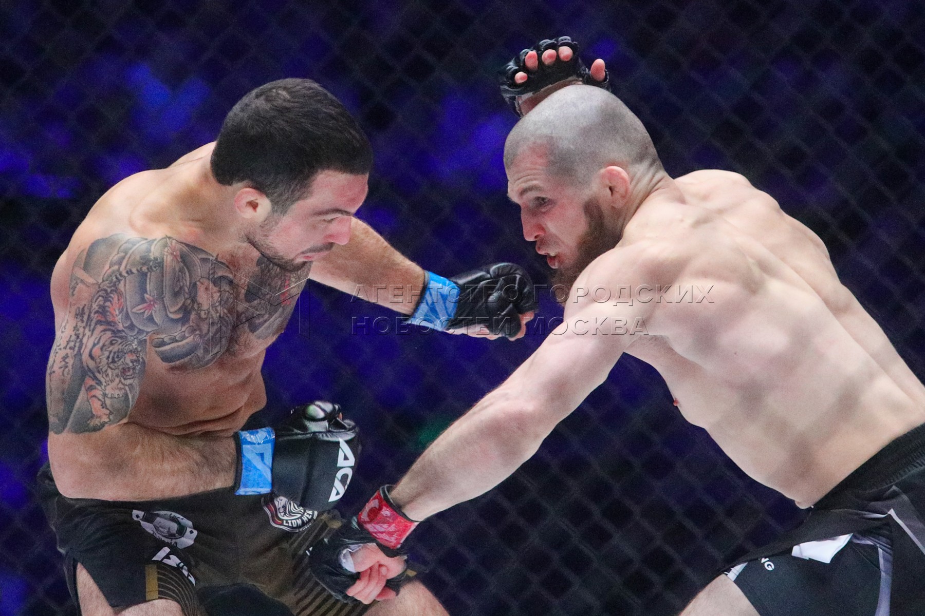 - Описание: Украинский боец смешанных единоборств Роман Огульчанский (слева) и российский боец смешанных единоборств Давлатманд Чупонов во время поединка на турнире ACA 147 в спорткомплексе «ЦСКА Арена».