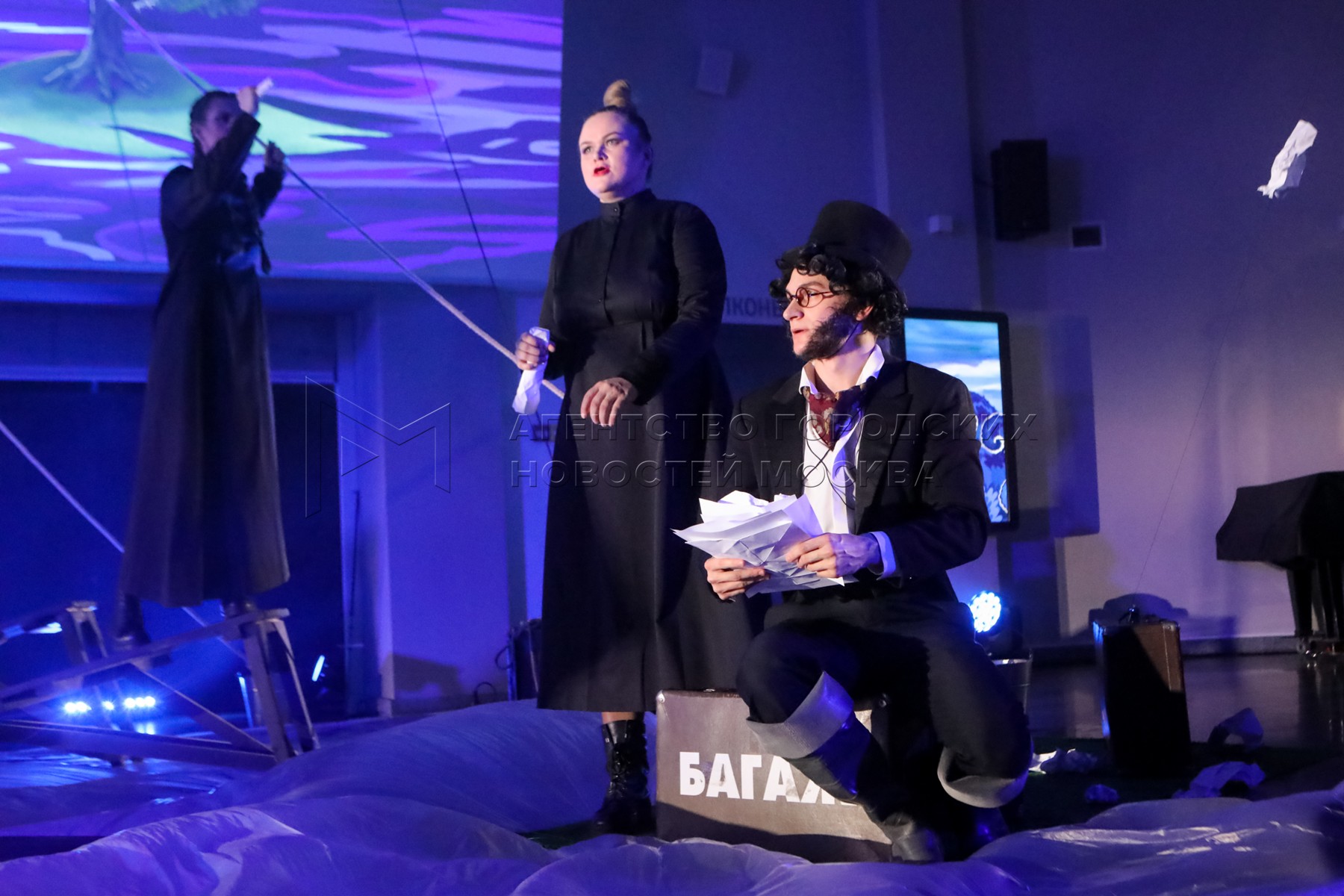 Актер Кирилл Шендеров в роли Пушкина во время премьерного спектакля Театра Романа...