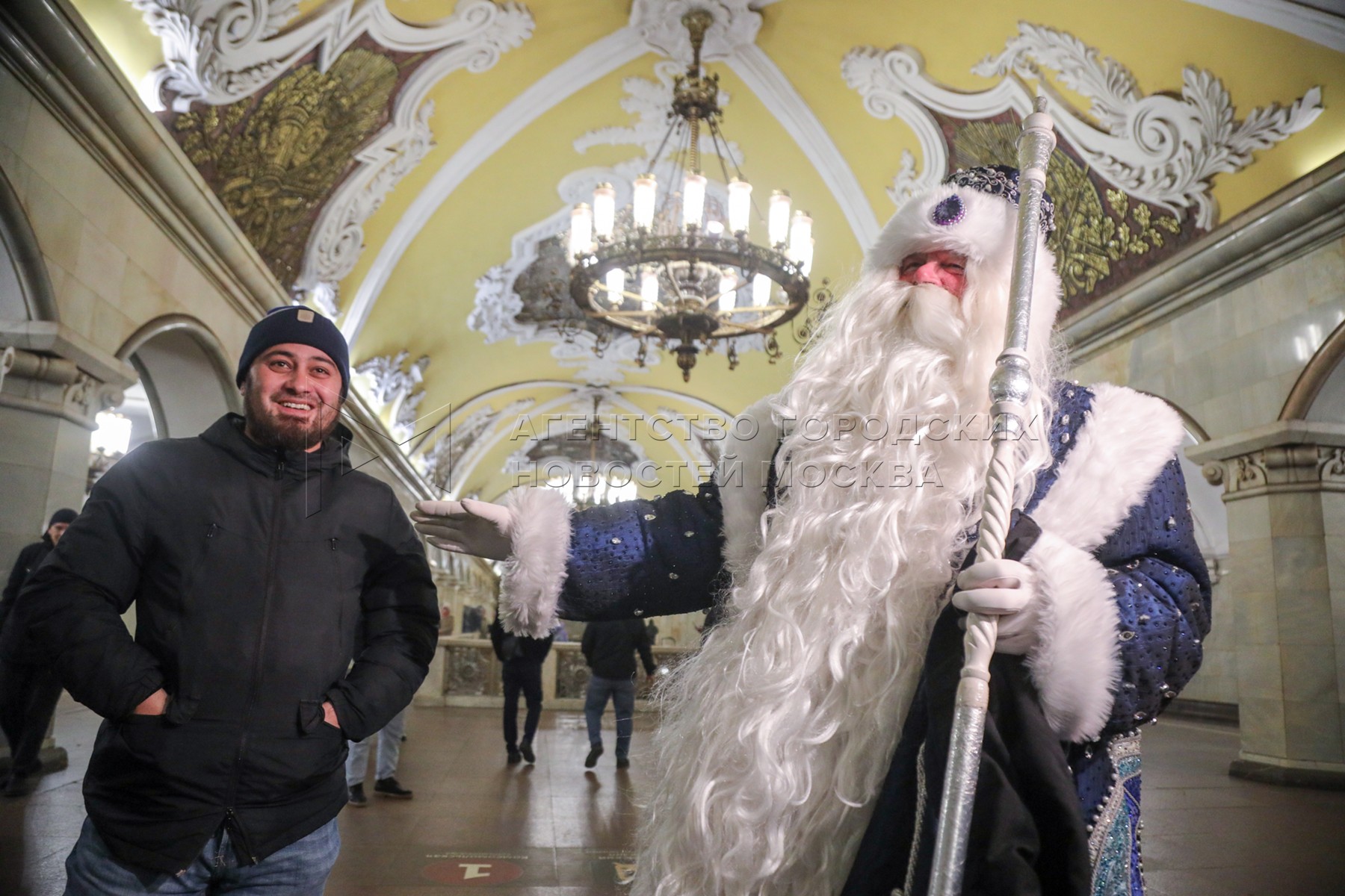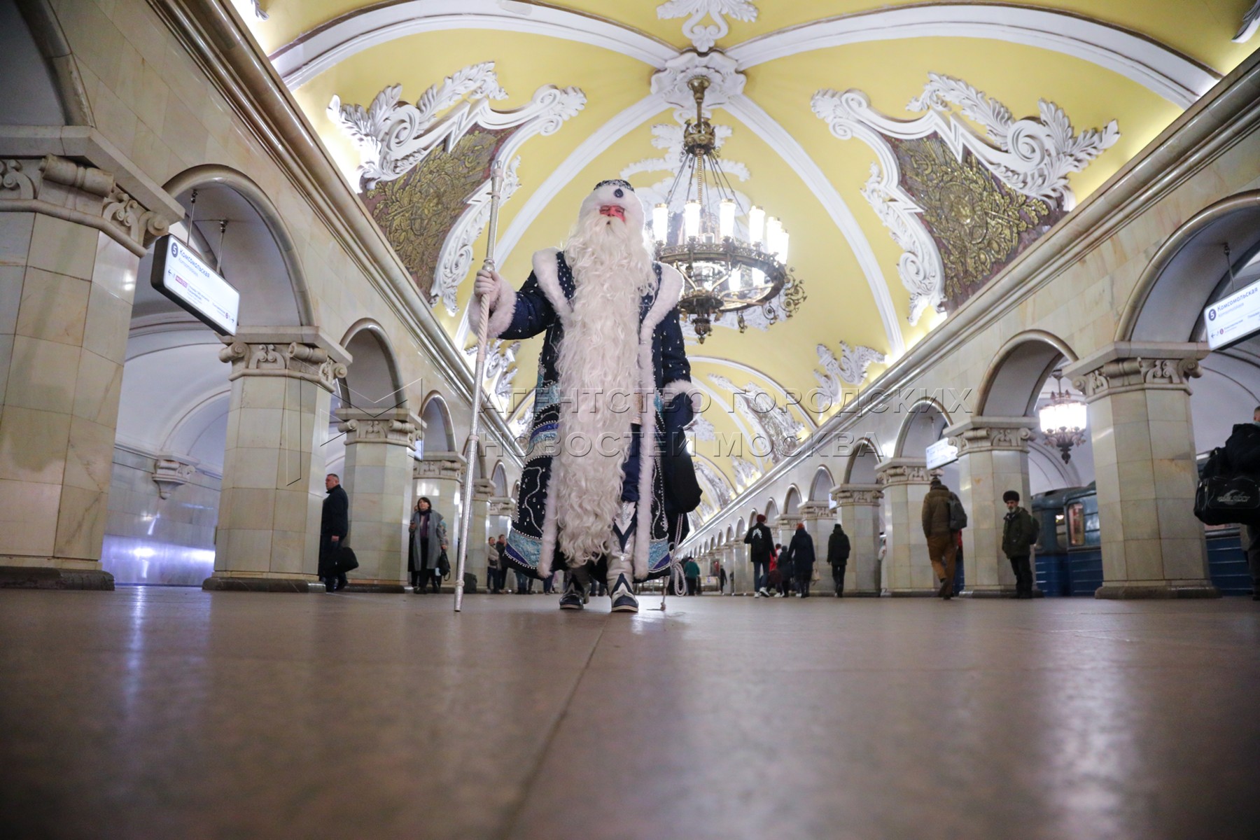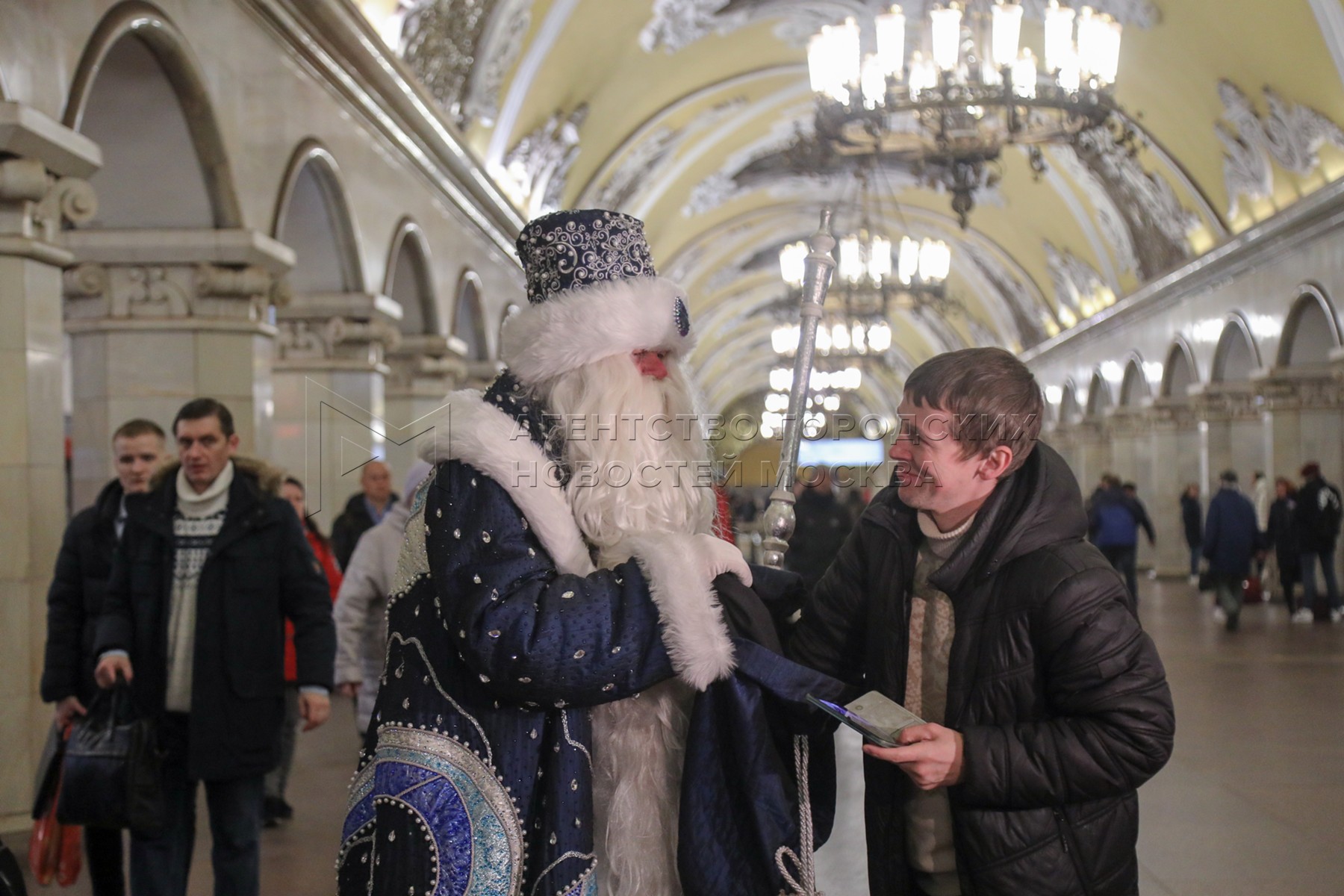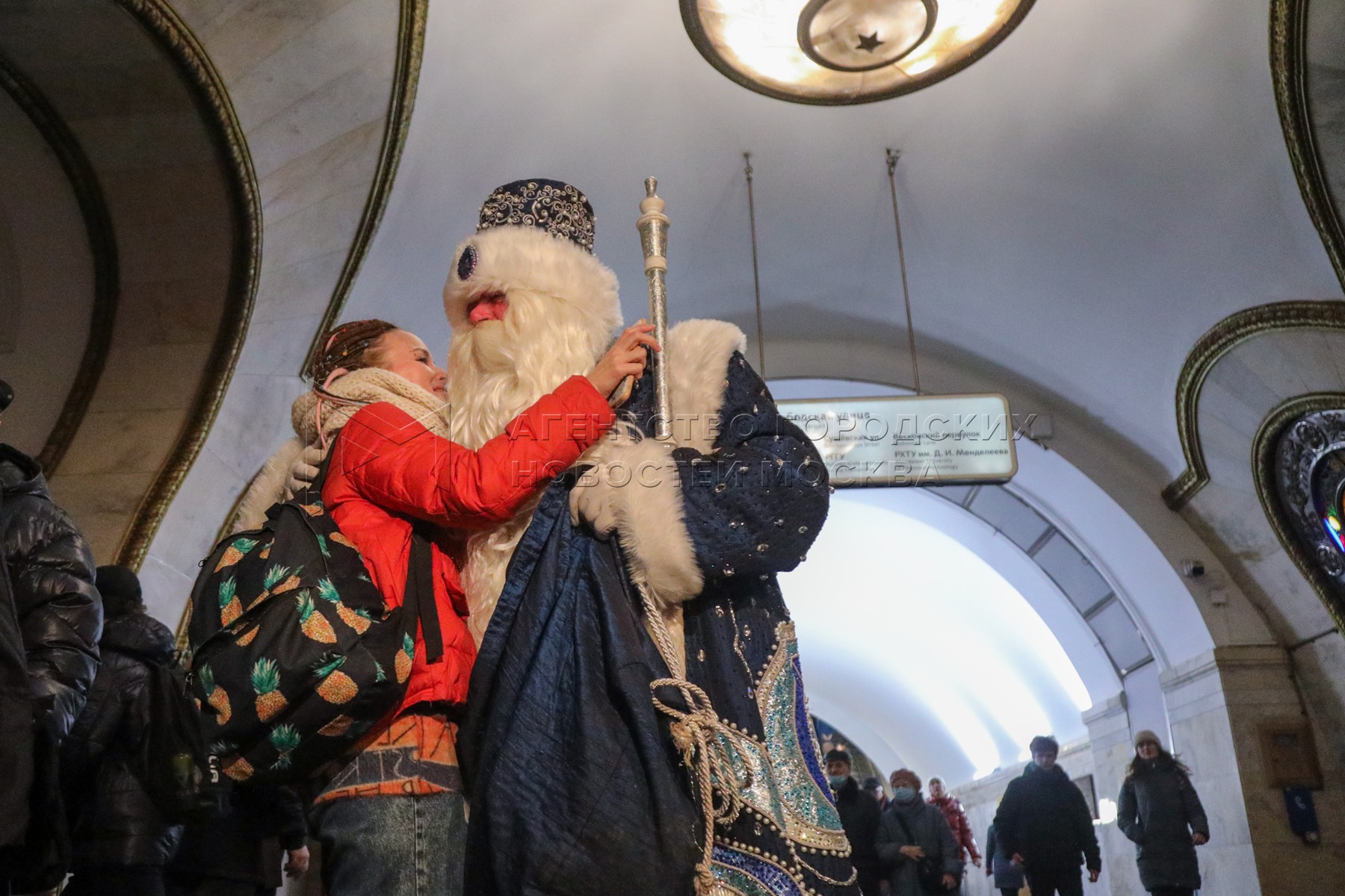 Празднование дня рождения московского Деда Мороза в столичном метрополитене.