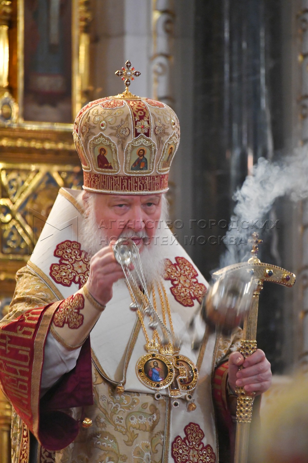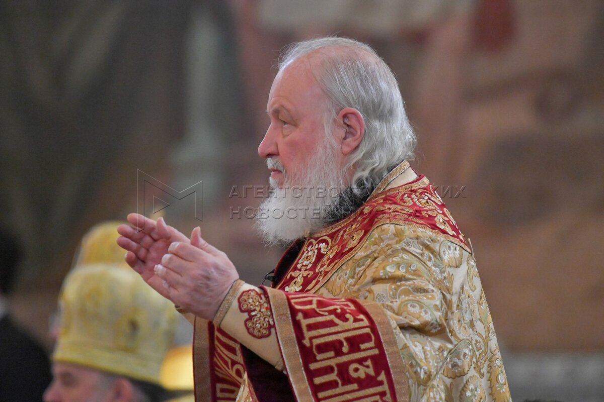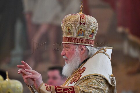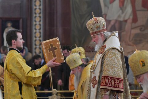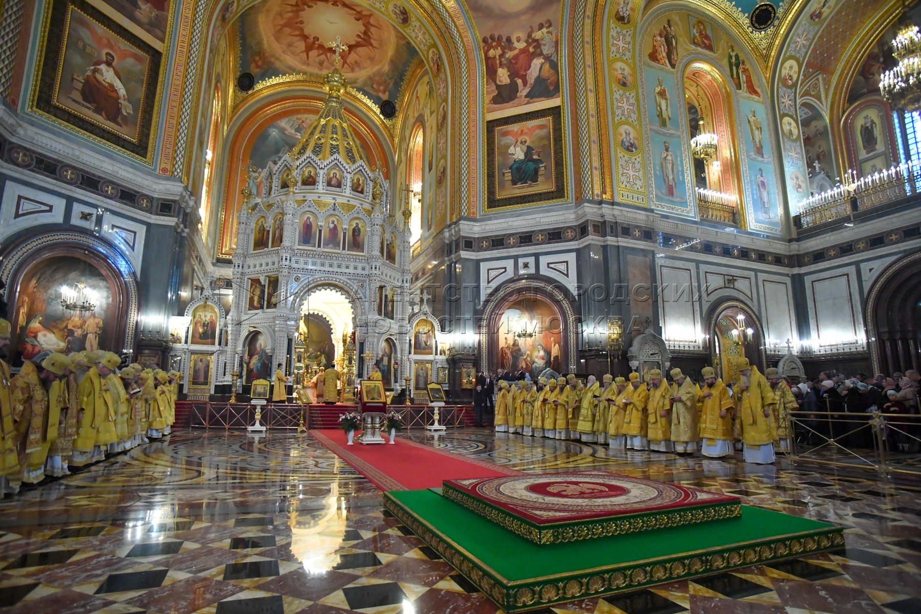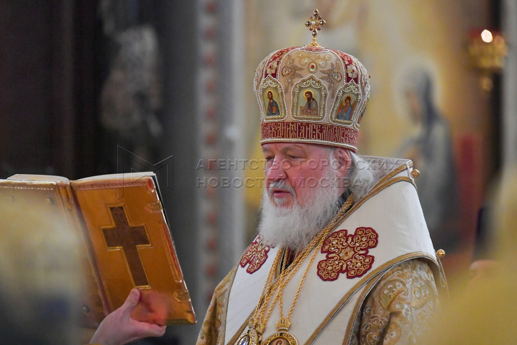 Патриарх Московский и всея Руси Кирилл проводит литургию в храме Христа Спасителя...