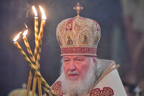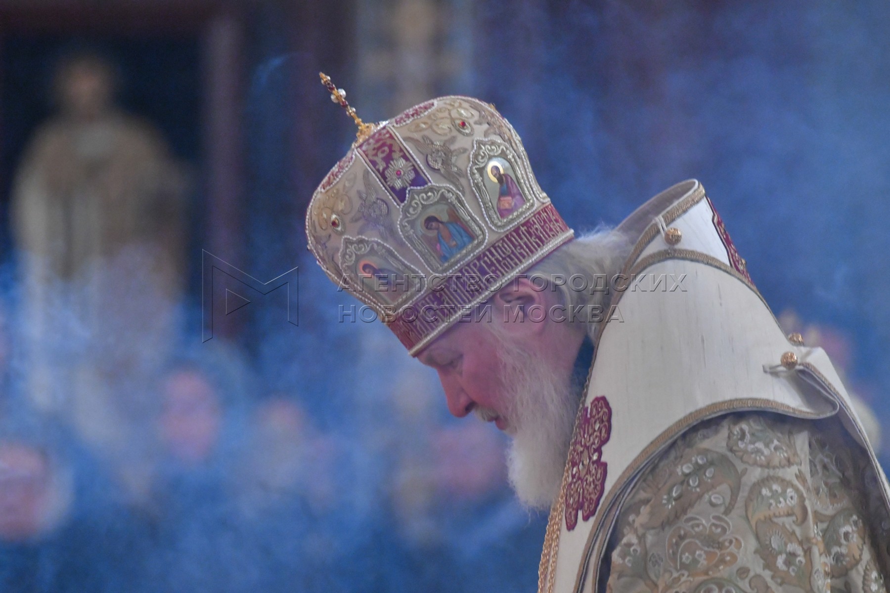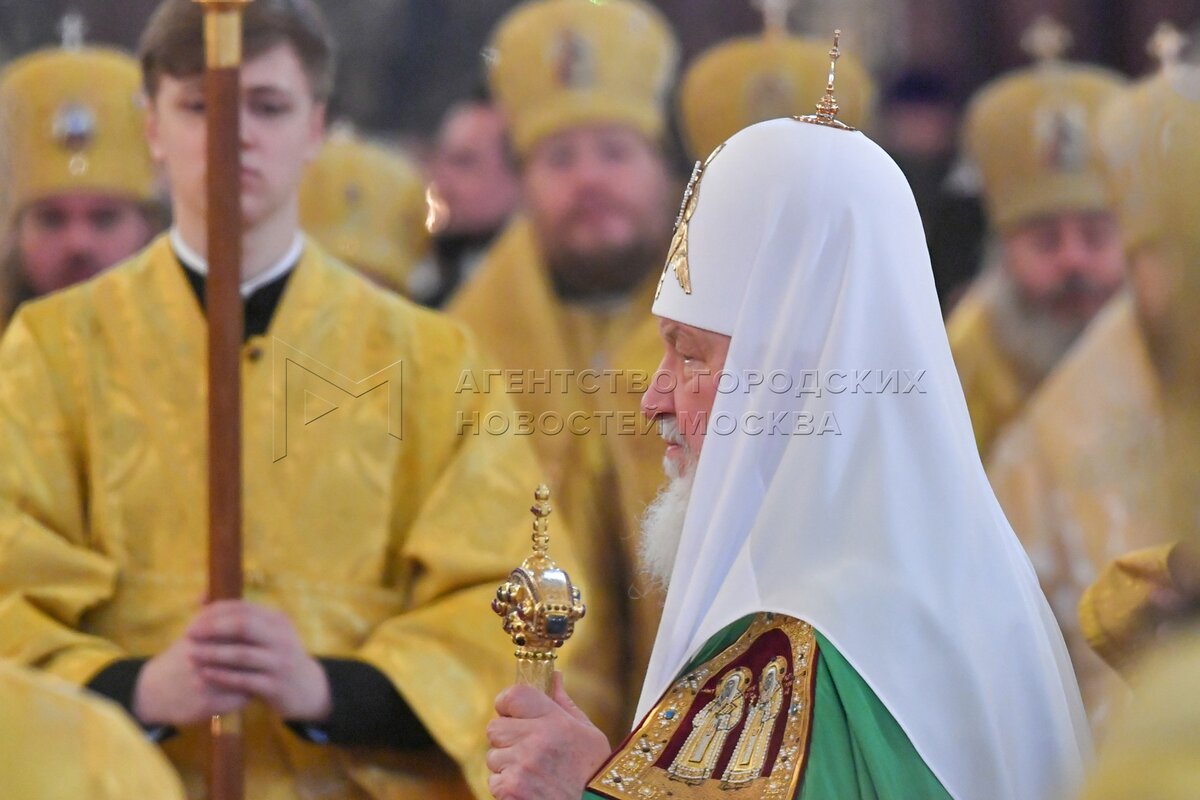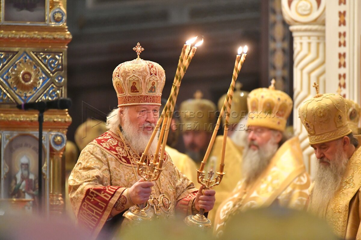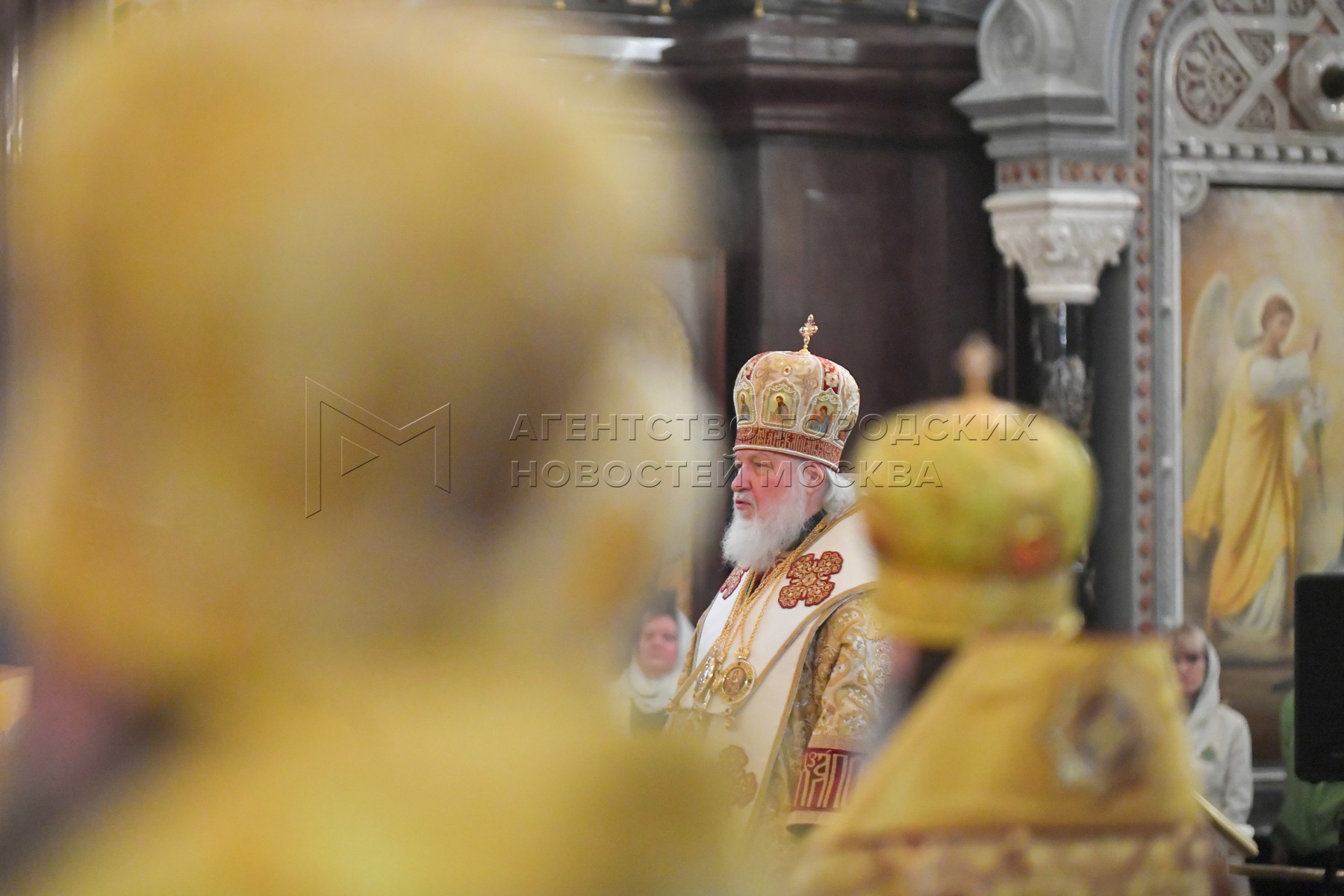 Патриарх Московский и всея Руси Кирилл проводит литургию в храме Христа Спасителя...