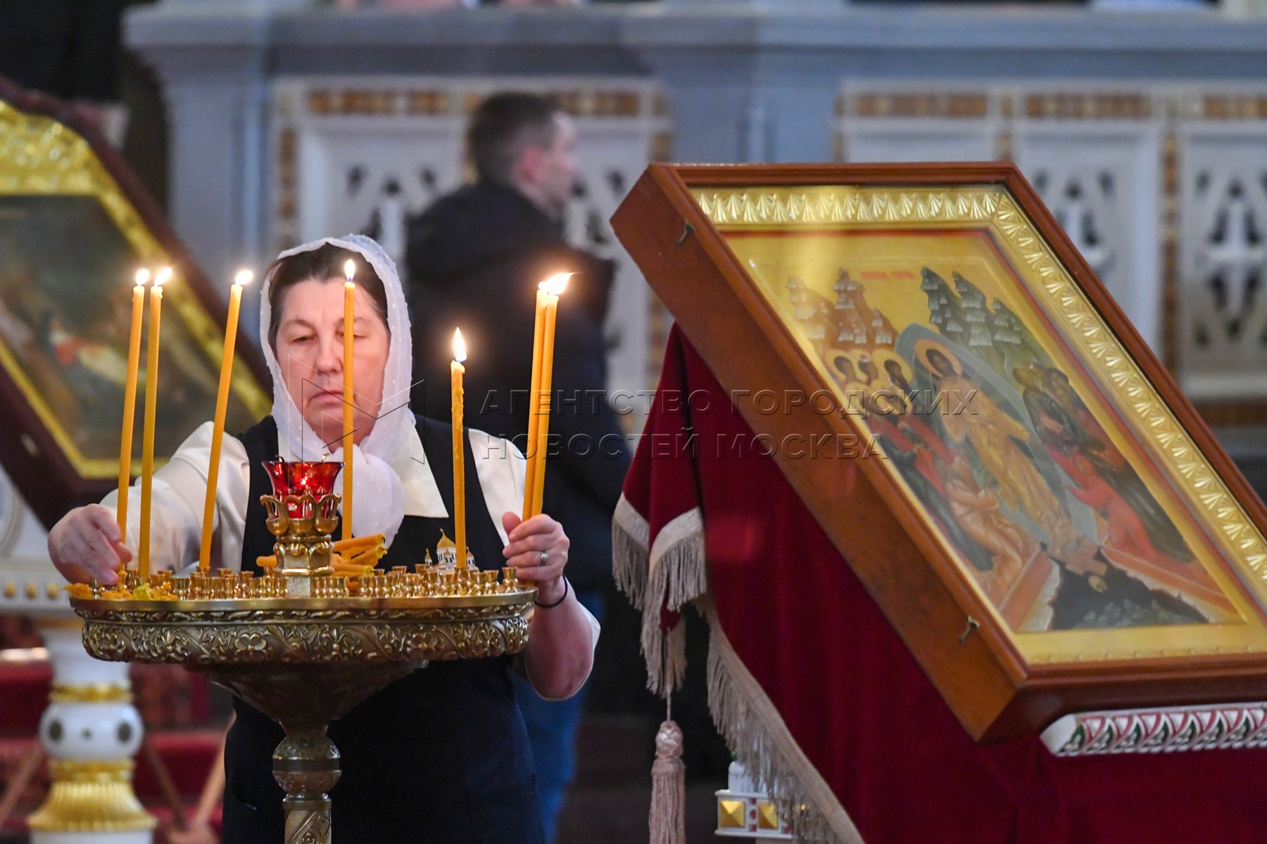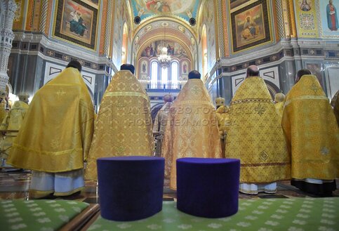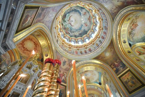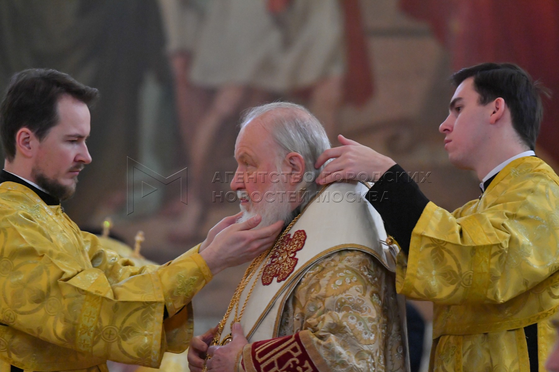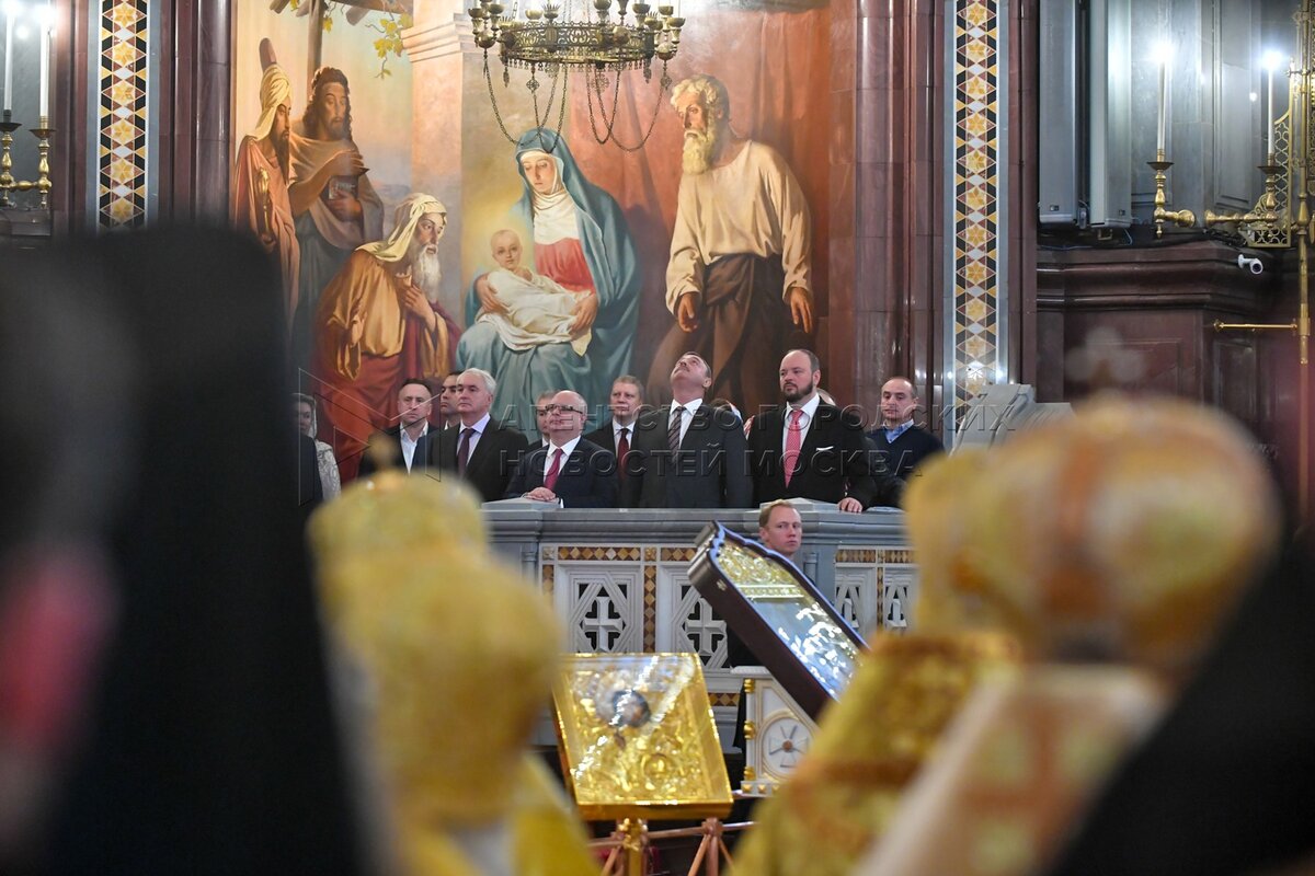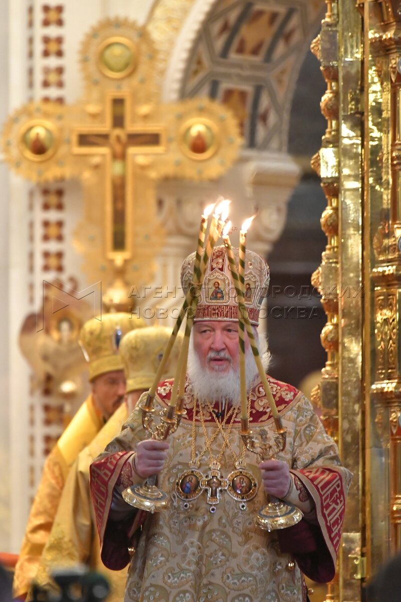 Патриарх Московский и всея Руси Кирилл проводит литургию в храме Христа Спасителя...