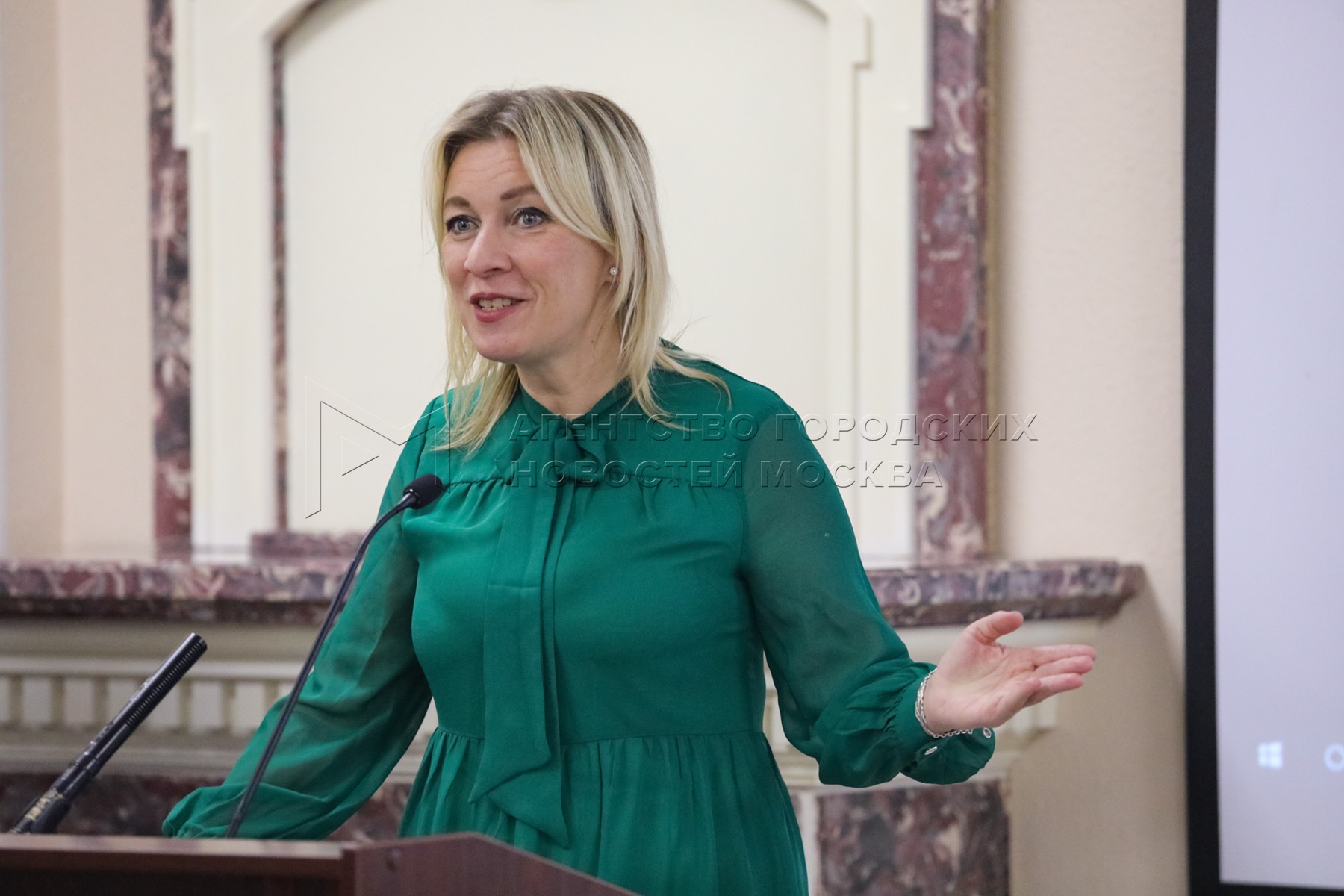 Официальный представитель МИД России Мария Захарова (в центре) во время открытия ...