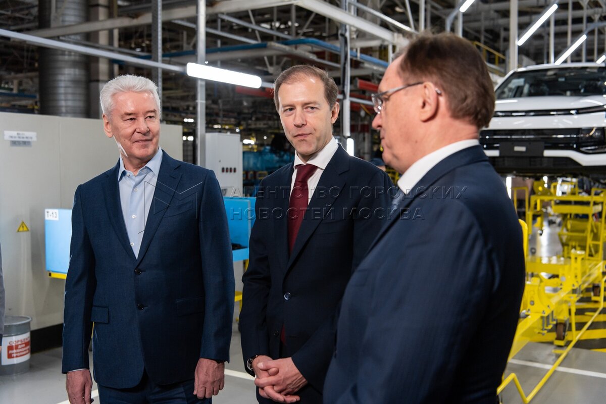 - Описание: Мэр Москвы Сергей Собянин, руководитель Департамента транспорта и развития дорожно-транспортной инфраструктуры города Москвы Максим Ликсутов и генеральный директор ПАО «КамАЗ» Сергей Когогин (слева направо) во время открытия серийной сборки автомобилей на столичном заводе «Москвич». Фото: Максим Мишин, пресс-служба мэра и правительства Москвы.