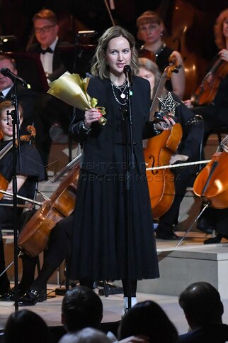 • Описание: Режиссер Юлия Киселева на торжественной церемонии вручения VIII Всероссийской премии «За верность науке» в Московском концертном зале «Зарядье».