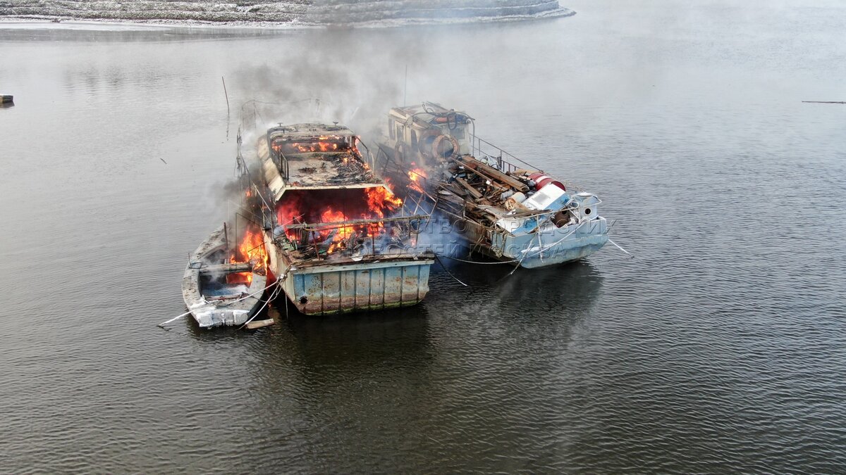 Пришвартованное судно загорелось в столичном районе Братеево.