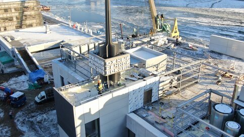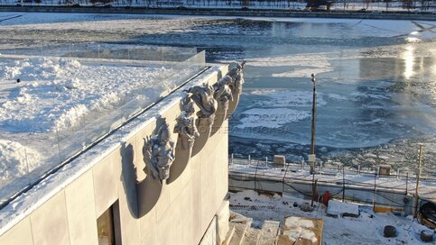 Вид с квадрокоптера на реконструкцию здания Южного речного вокзала.