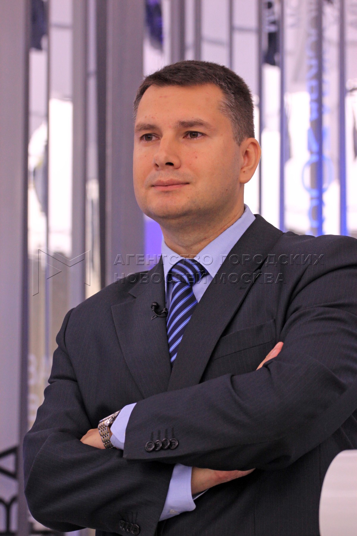Кандидат в депутаты Мосгордумы Алексей Кравцов во время подготовки к теледебатам ...