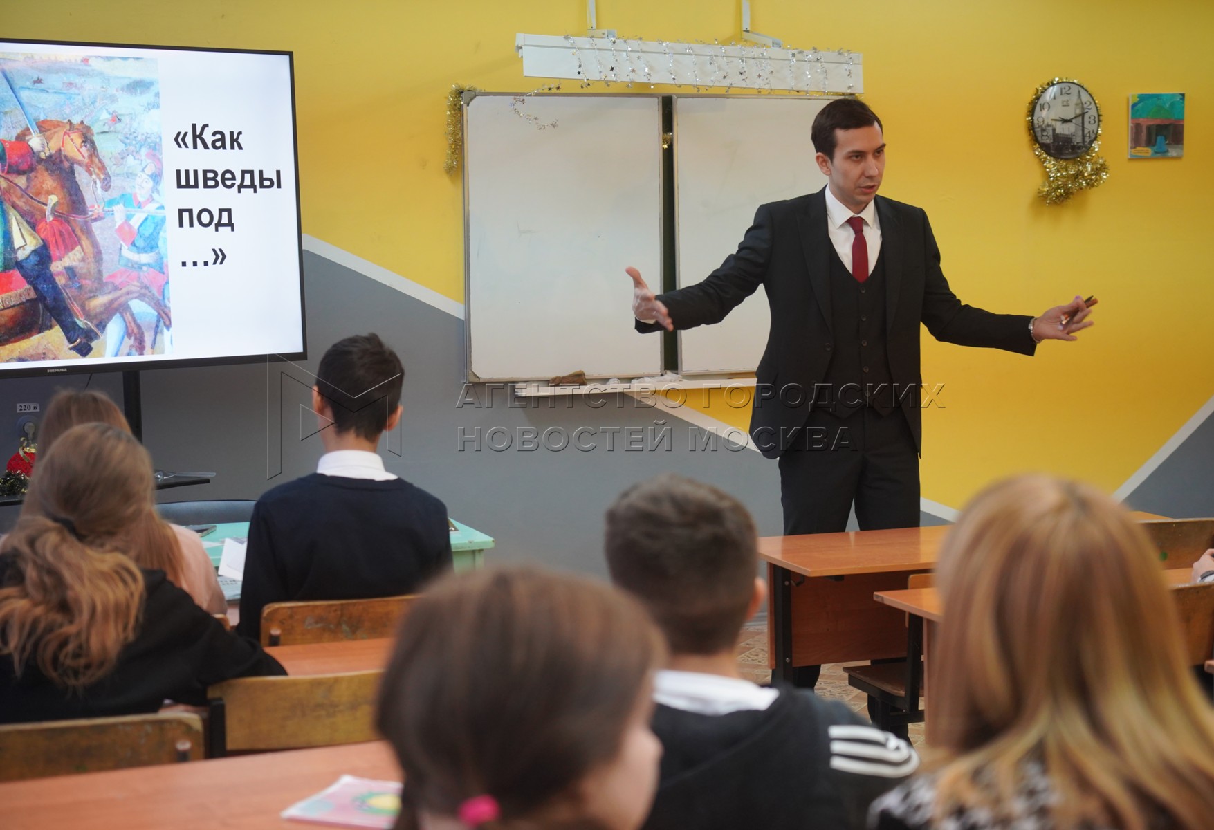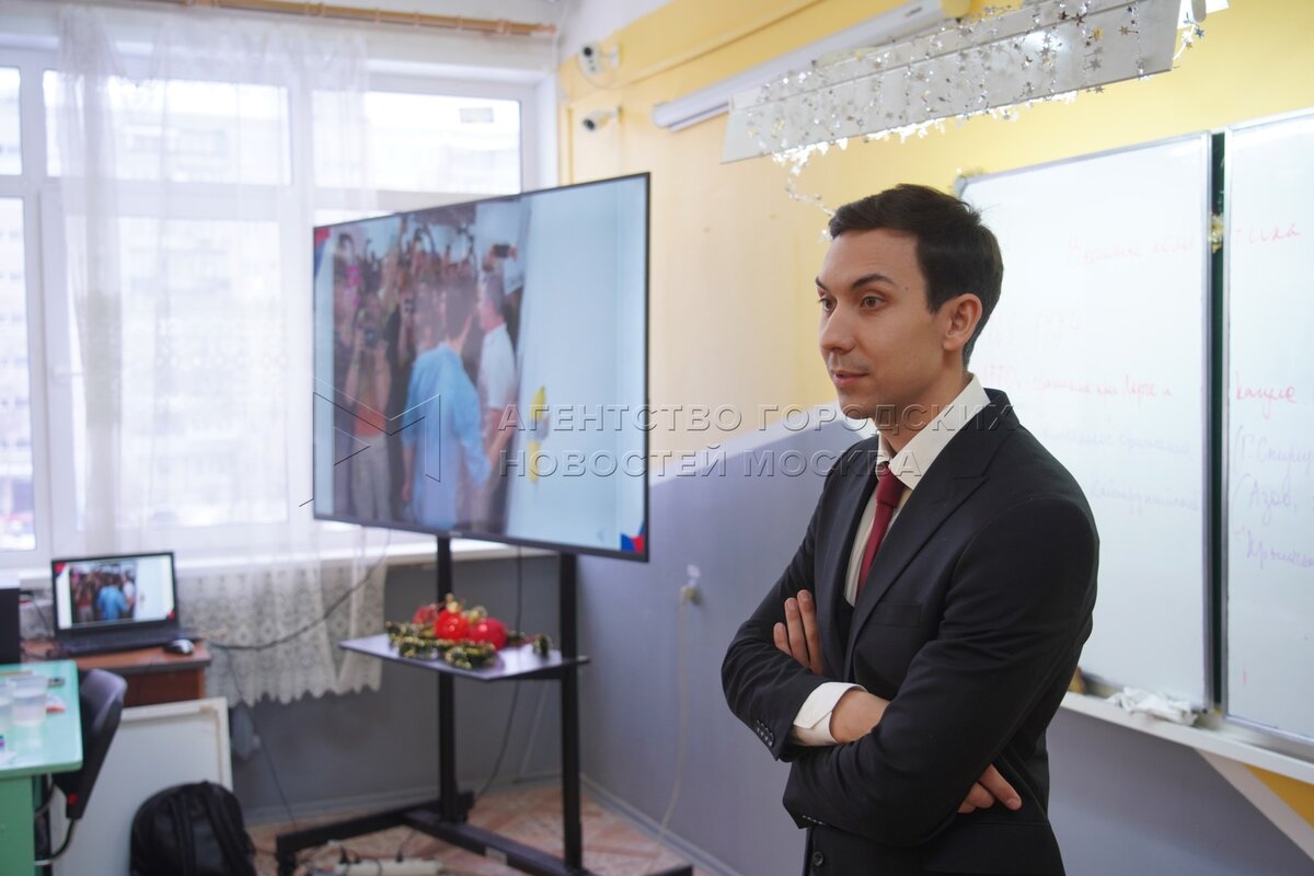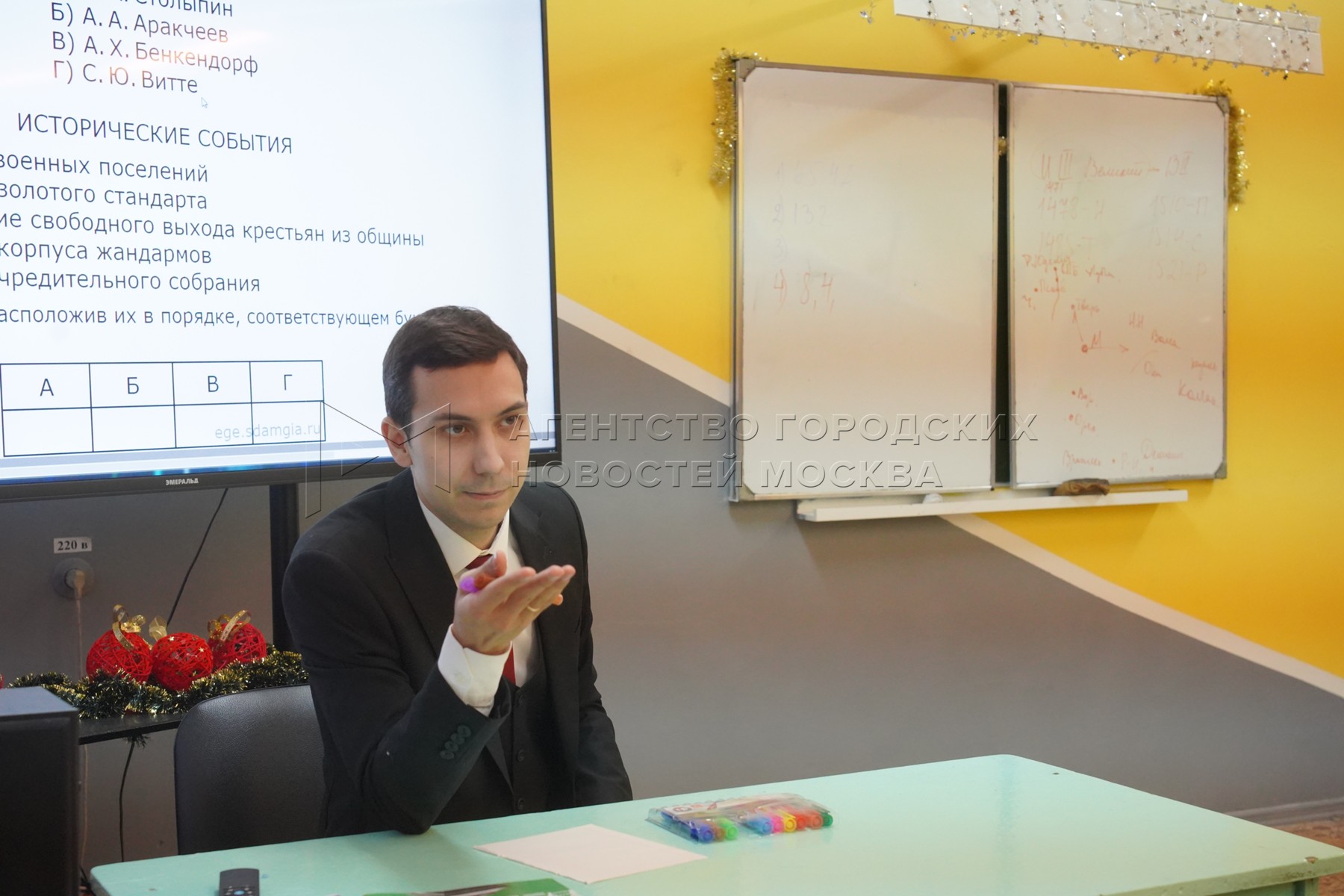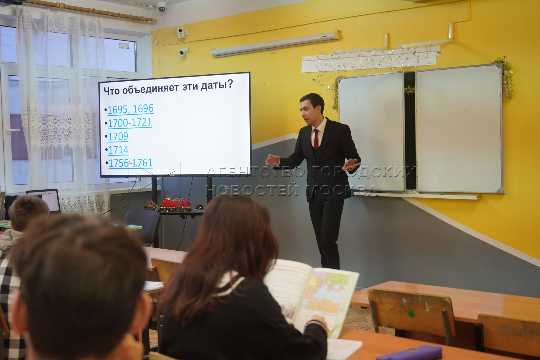 Победитель конкурса «Учитель года России» Дмитрий Лутовинов во время урока истории и мировой художественной культуры в школе №16 в Орехово-Зуево.