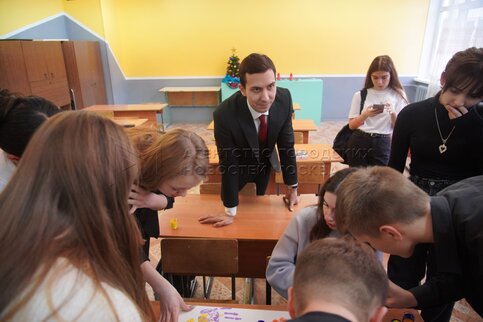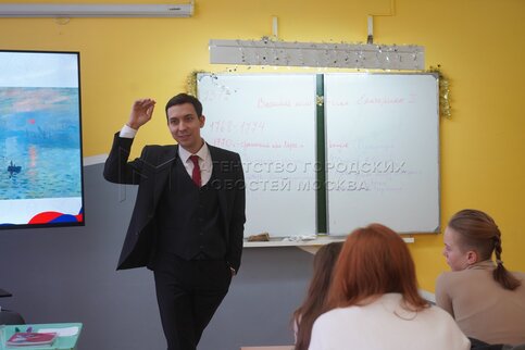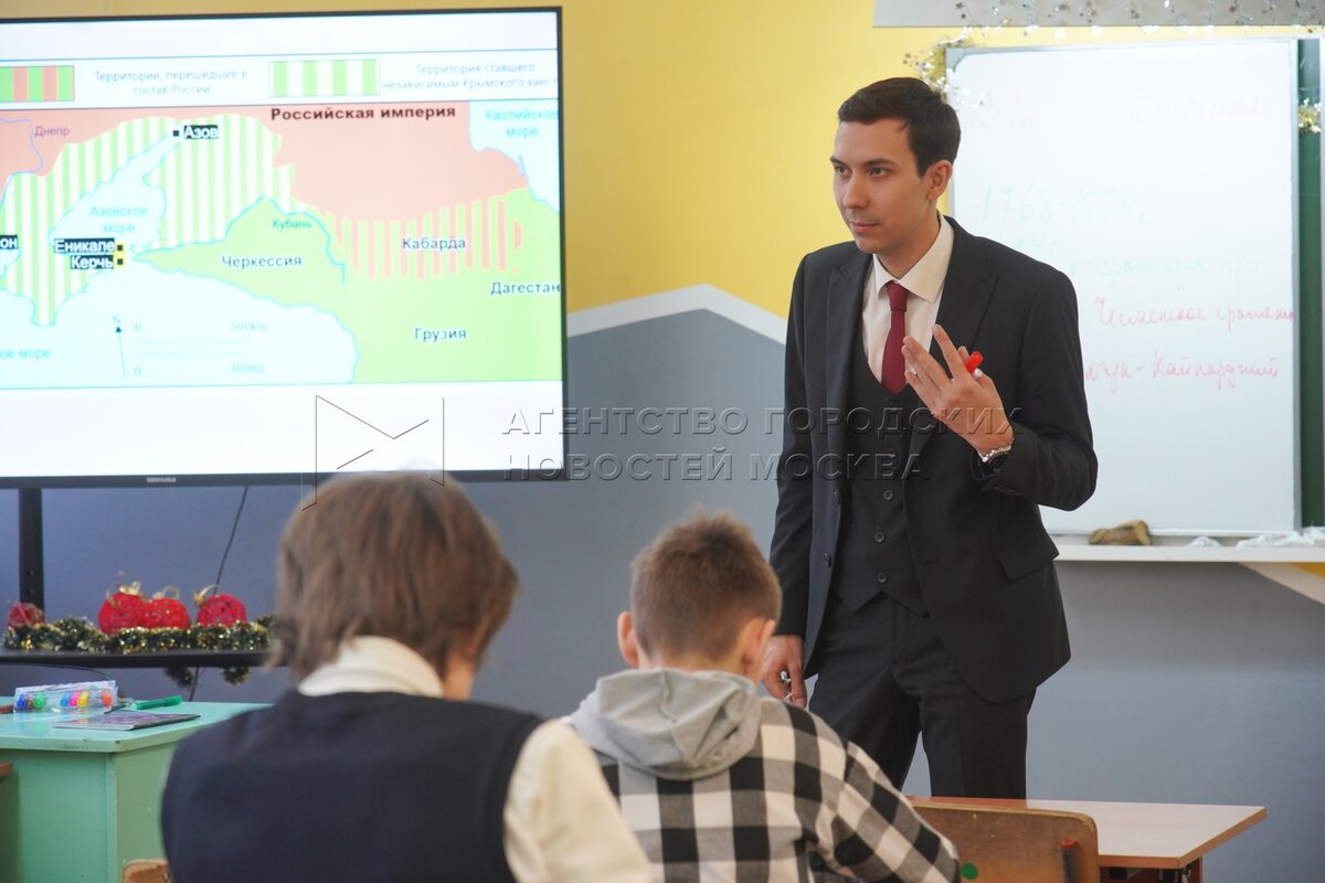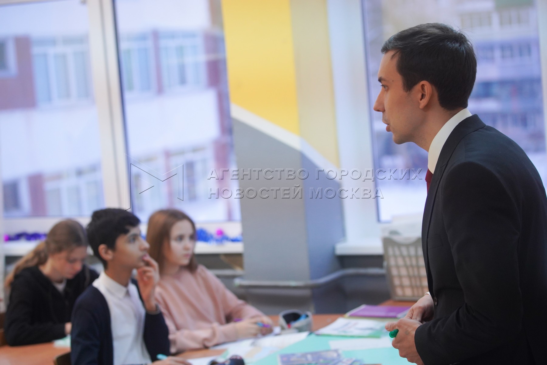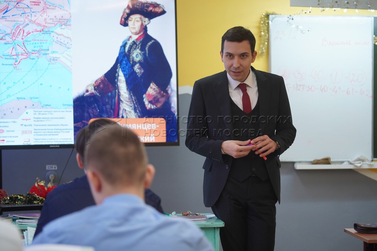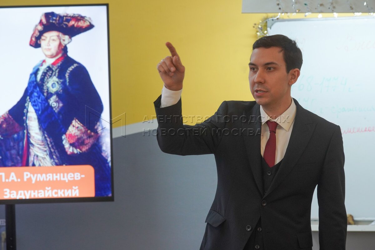 Победитель конкурса «Учитель года России» Дмитрий Лутовинов во время урока истории и мировой художественной культуры в школе №16 в Орехово-Зуево.