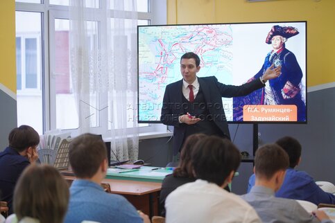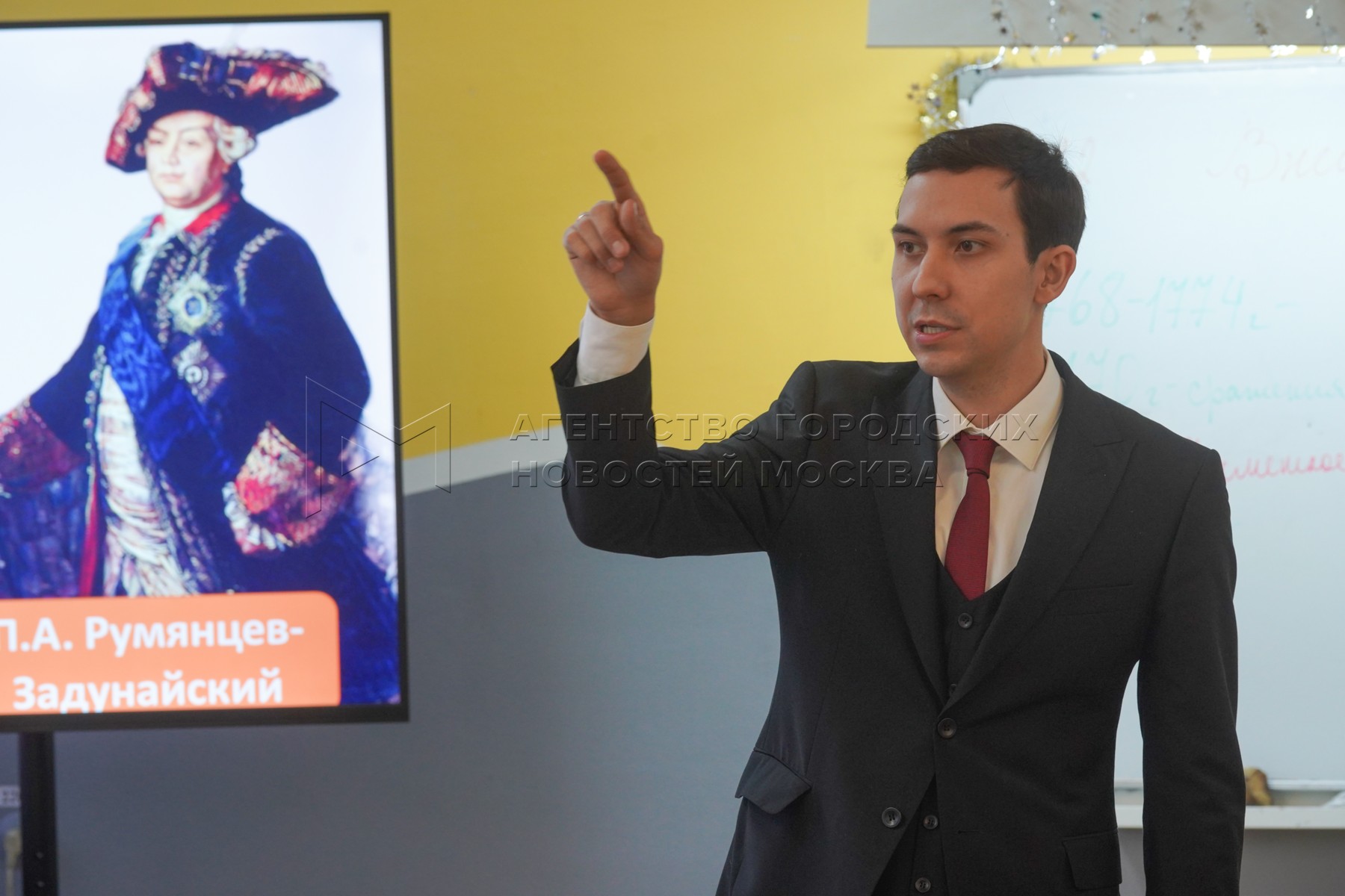 Победитель конкурса «Учитель года России» Дмитрий Лутовинов во время урока истори...