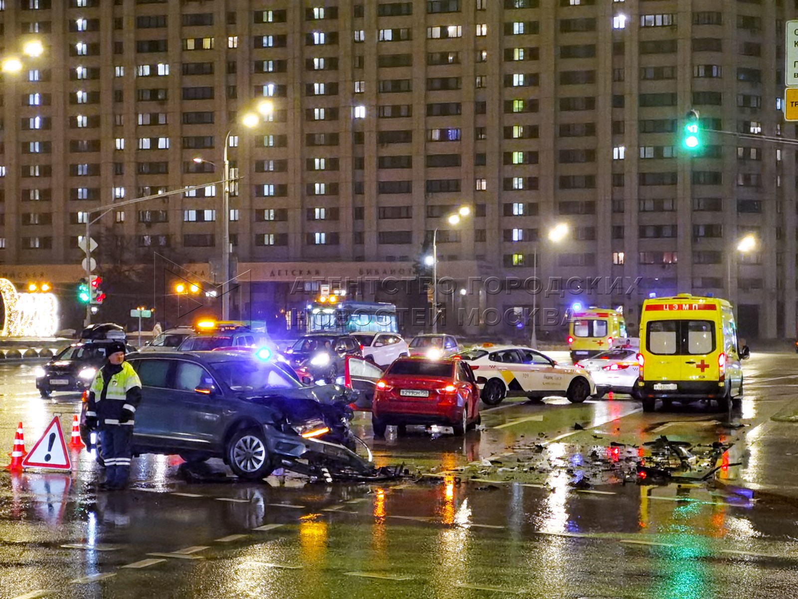 - Описание: Последствия ДТП с участием двух автомобилей на пересечении ул. Большая Якиманка и ул. Крымский вал.