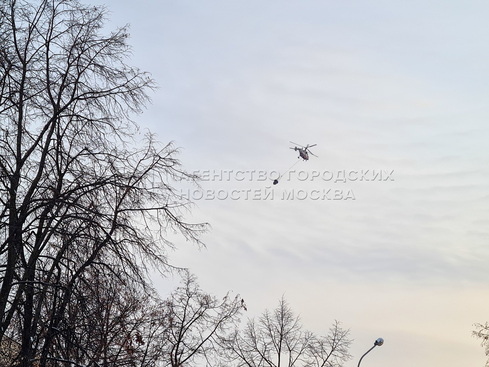 Пожарно-спасательные подразделения на месте возгорания на складе по адресу: ул. Д...