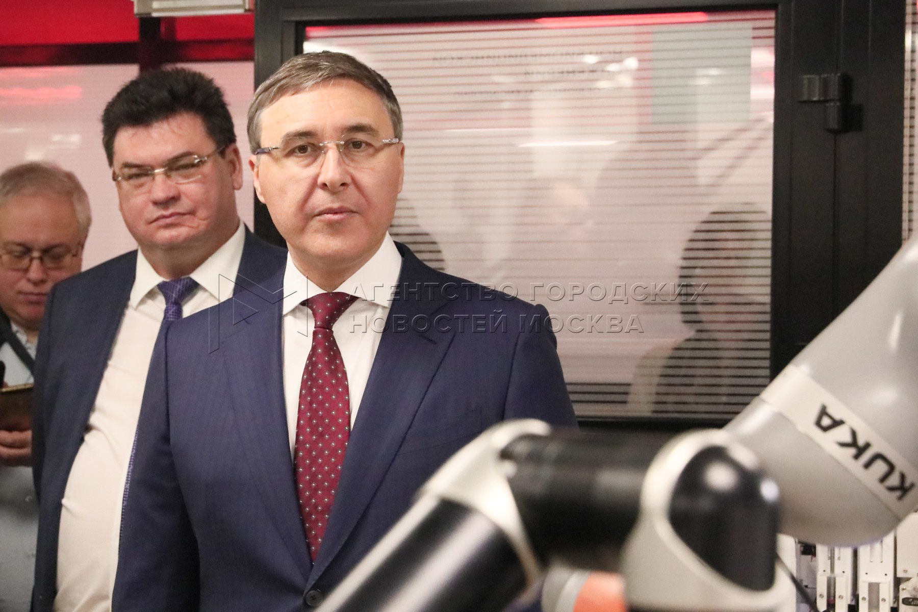 • Описание: Глава министерства науки и высшего образования РФ Валерий Фальков (справа) в День российского студенчества посетил лаборатории Национального исследовательского технологического университета МИСиС.