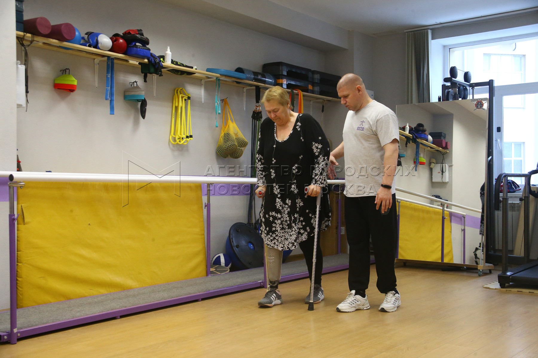 Тренировка в «Школе ходьбы» вместе с реабилитологом протезно-ортопедического цент...