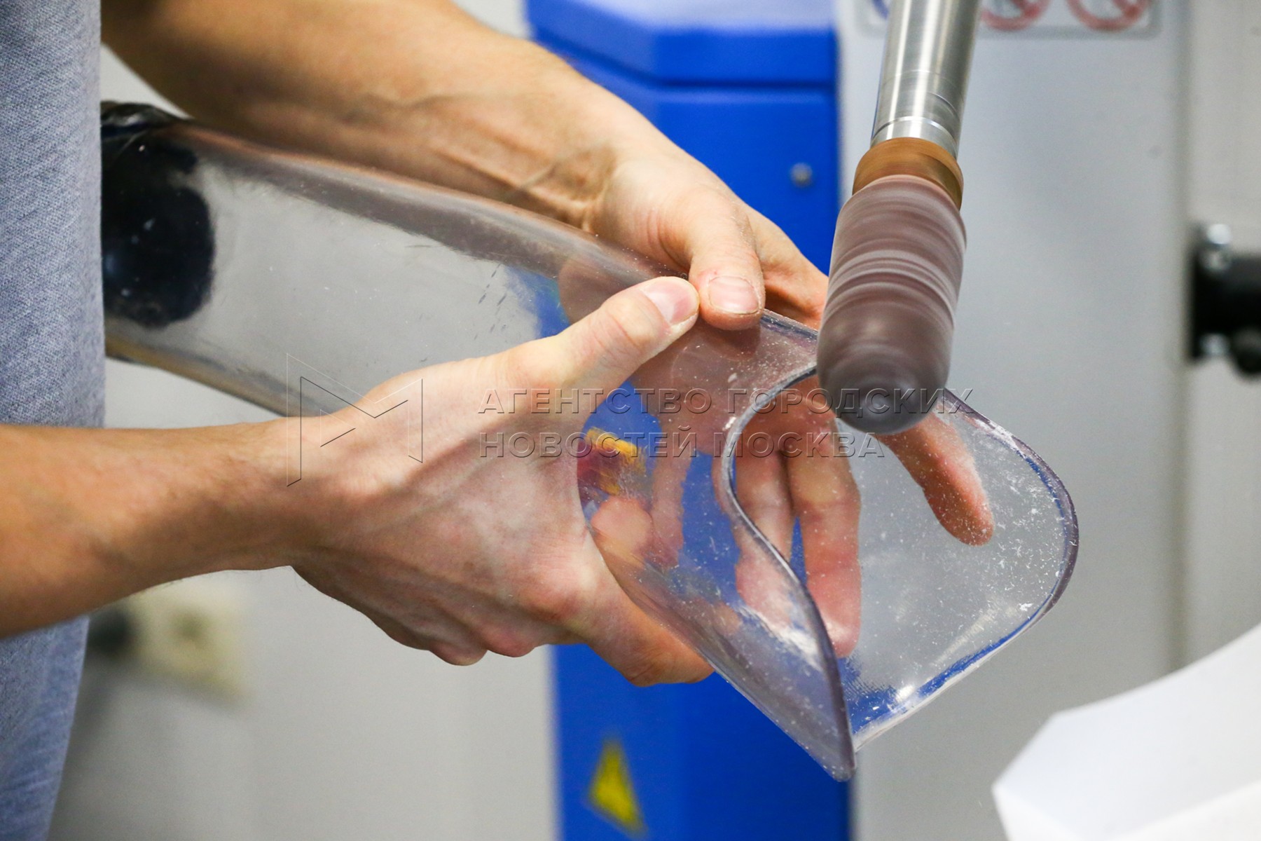 Полировка тестовой культеприемной гильзы голени в протезно-ортопедическом центре «Орто-Инновации» на Проспекте мира.
