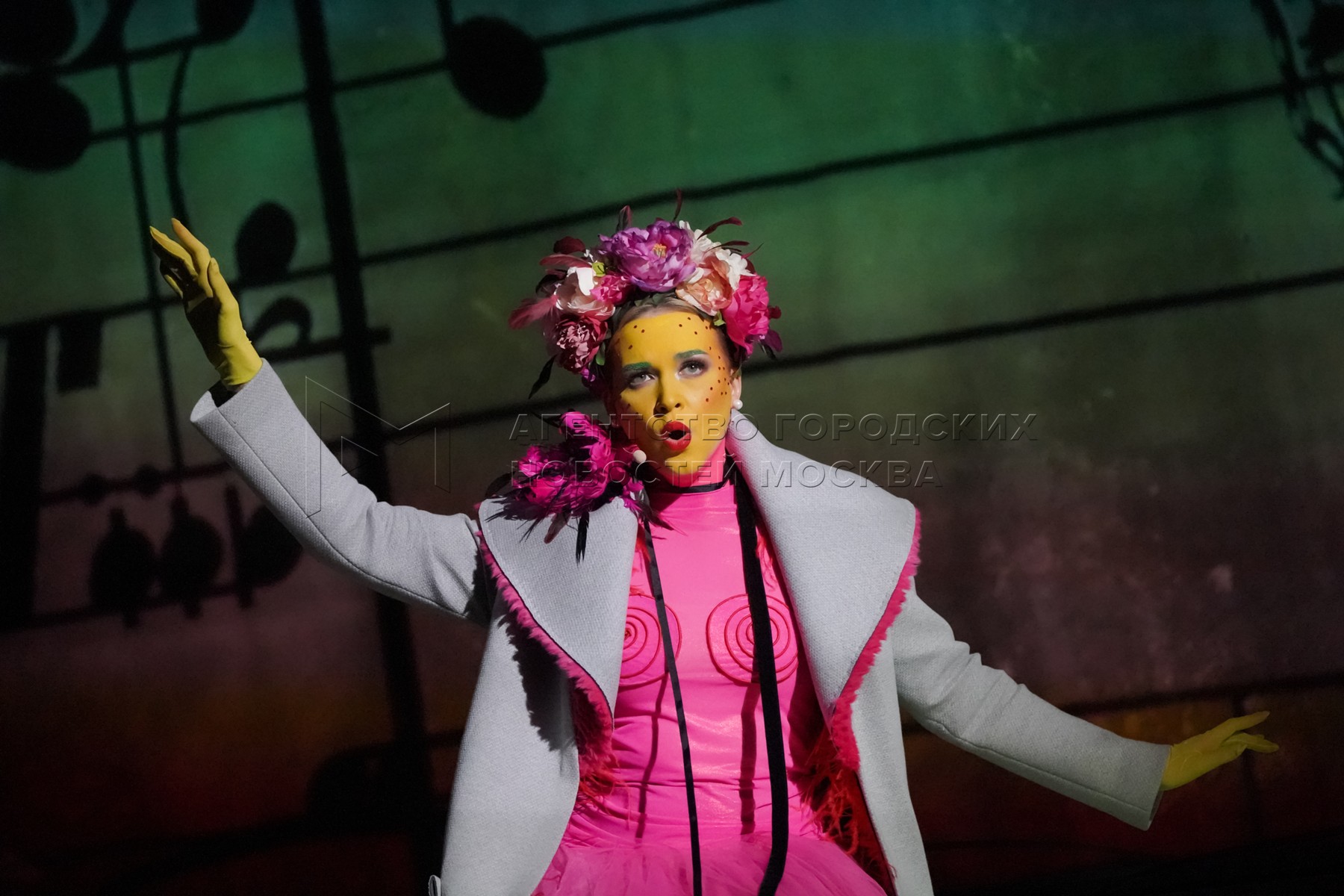 • Описание: Оперная певица Ульяна Бирюкова (меццо-сопрано) во время премьеры оперы «Книга висячих садов» в московской арт-галерее «Коллектор».