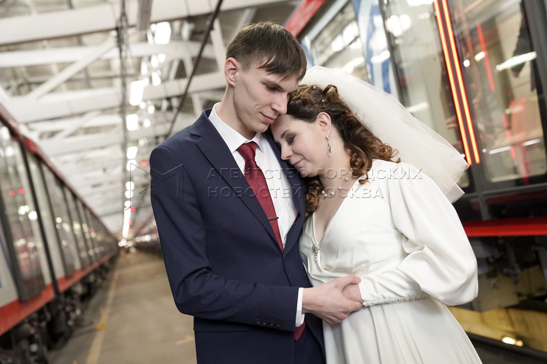 Церемония бракосочетания в поезде «Москва-2020» на Большой кольцевой линии столич...