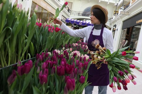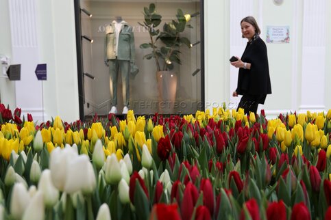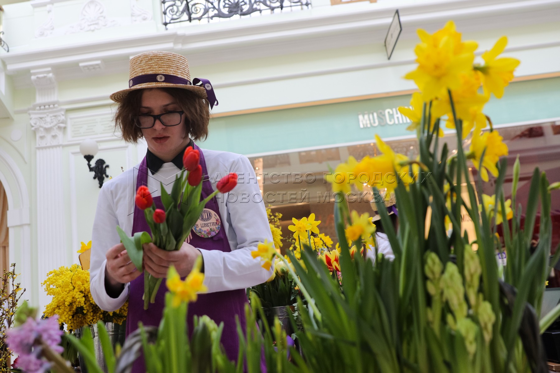 Открытие цветочной ярмарки «Пассаж в цветах» в Петровском пассаже в центре Москвы...