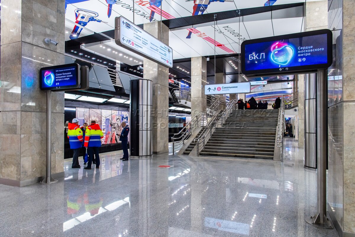 Станция «Сокольники» Большой кольцевой линии (БКЛ) метрополитена. Фото: Максим Ми...
