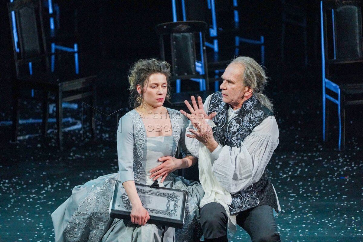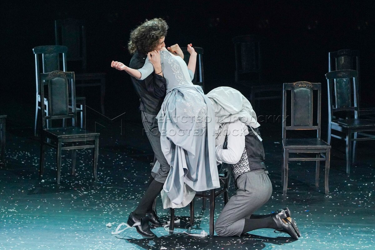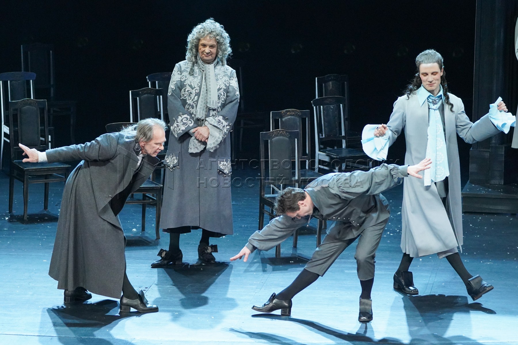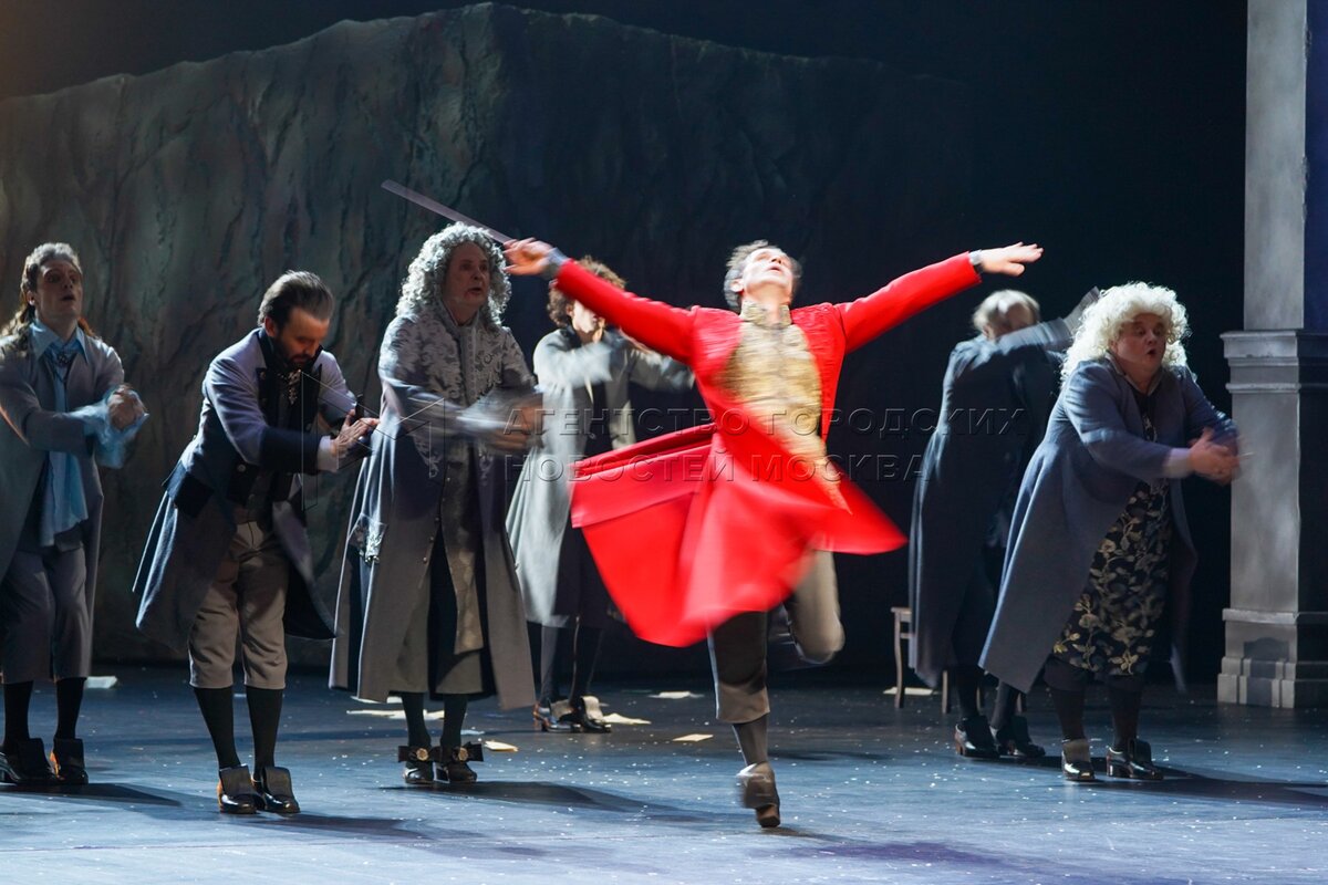 Актеры во время показа спектакля «Амадей» в Государственном академическом театре ...