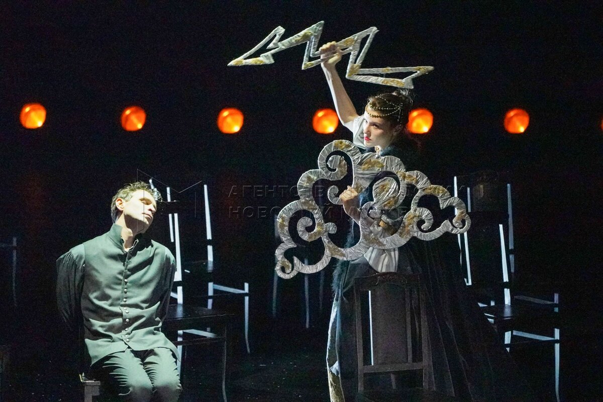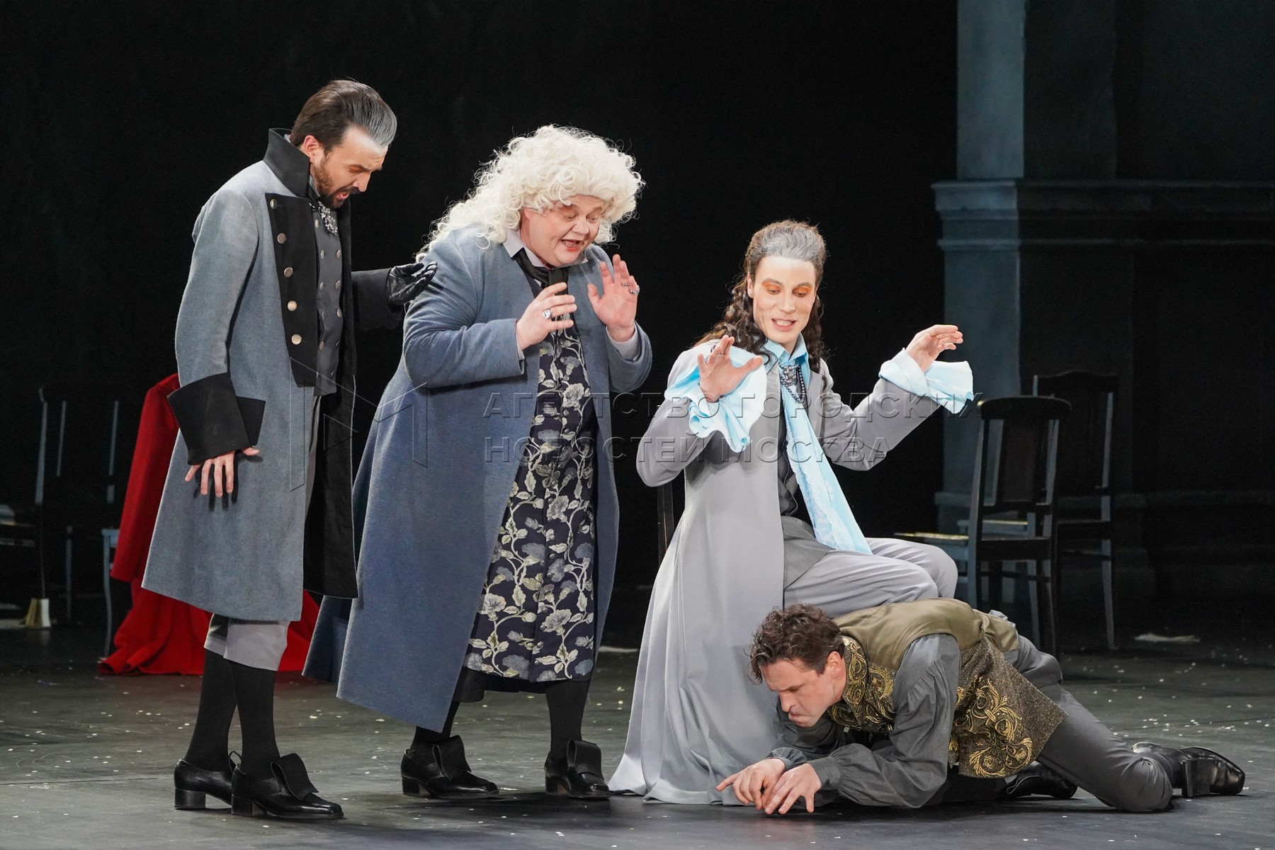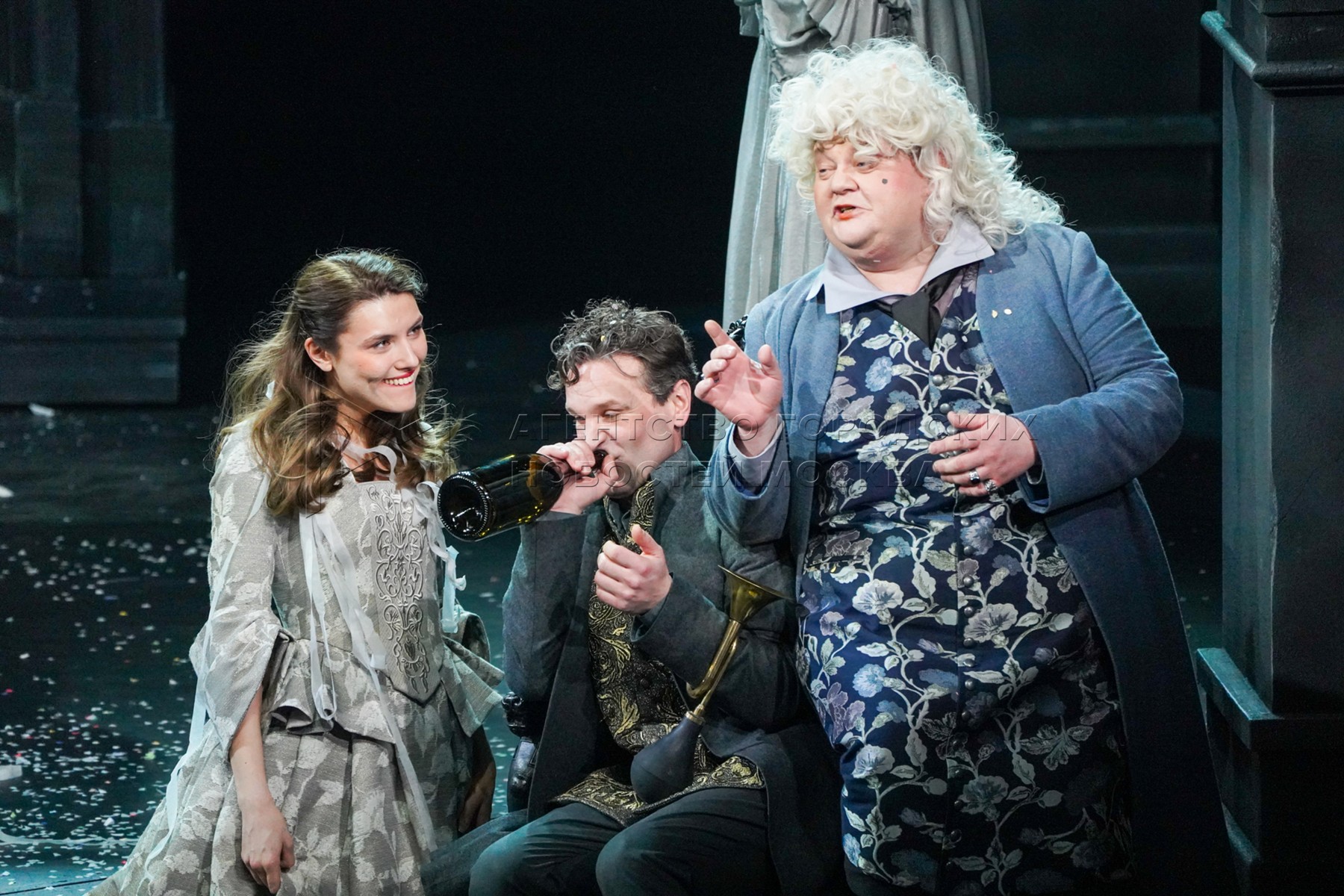 Актеры во время показа спектакля «Амадей» в Государственном академическом театре ...