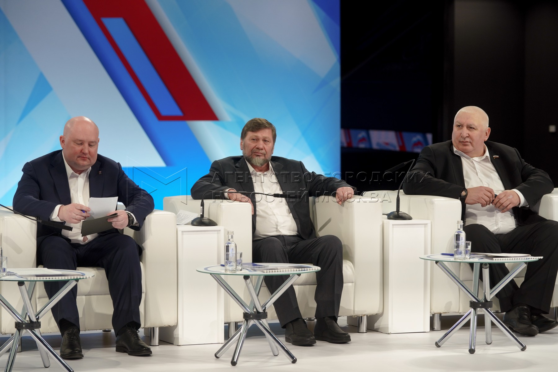 - Описание: Губернатор Севастополя Михаил Развожаев, заместитель министра спорта РФ Одес Байсултанов и член комитета Государственной Думы РФ по бюджету и налогам Мурат Хасанов (слева направо) во время заседания форума «Наука побеждать» в рамках реализации федерального проекта «Zа самбо» партии «Единая Россия» в Международном центре самбо в «Лужниках».