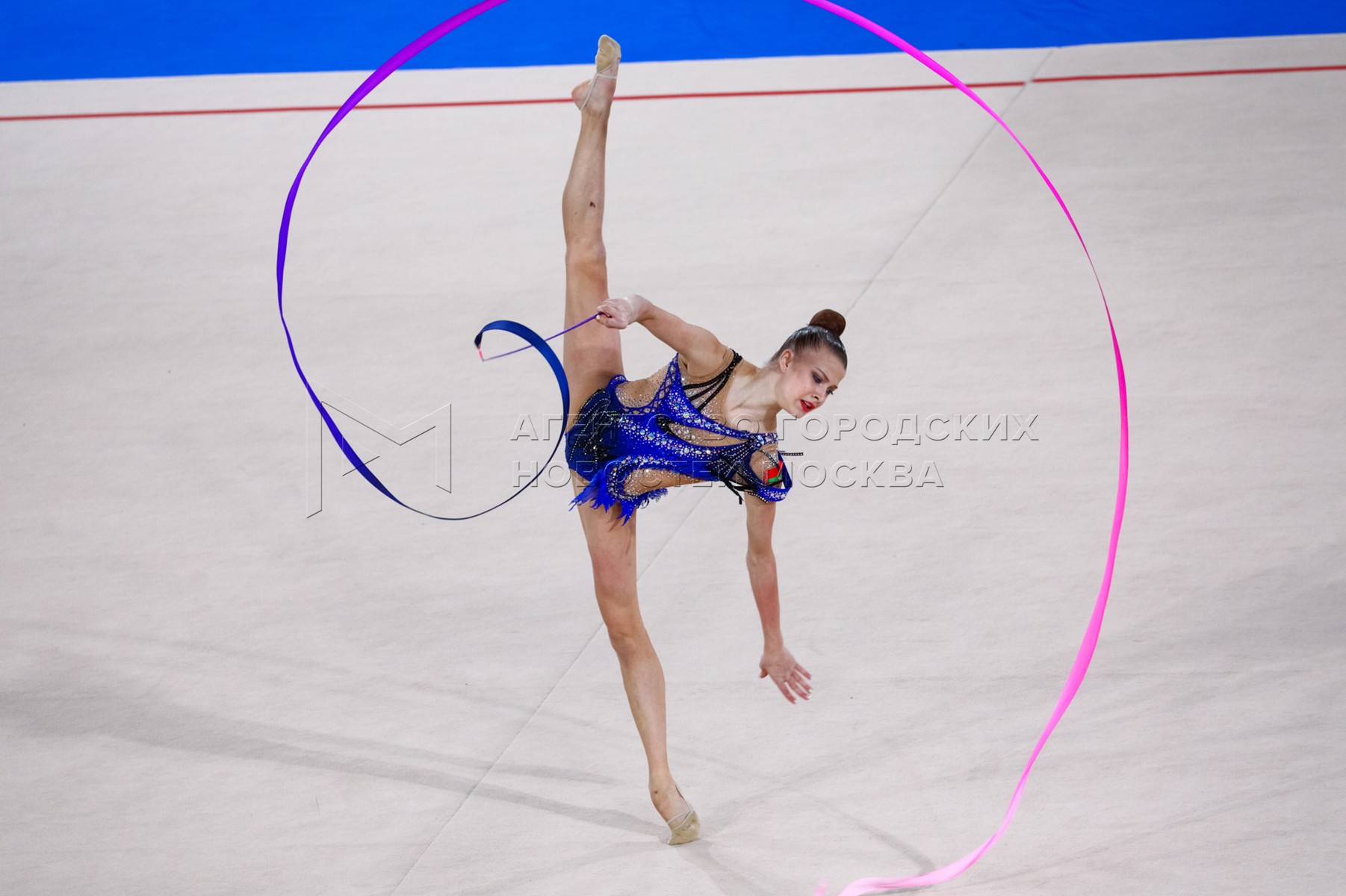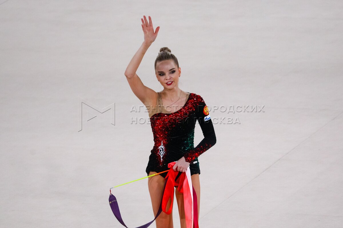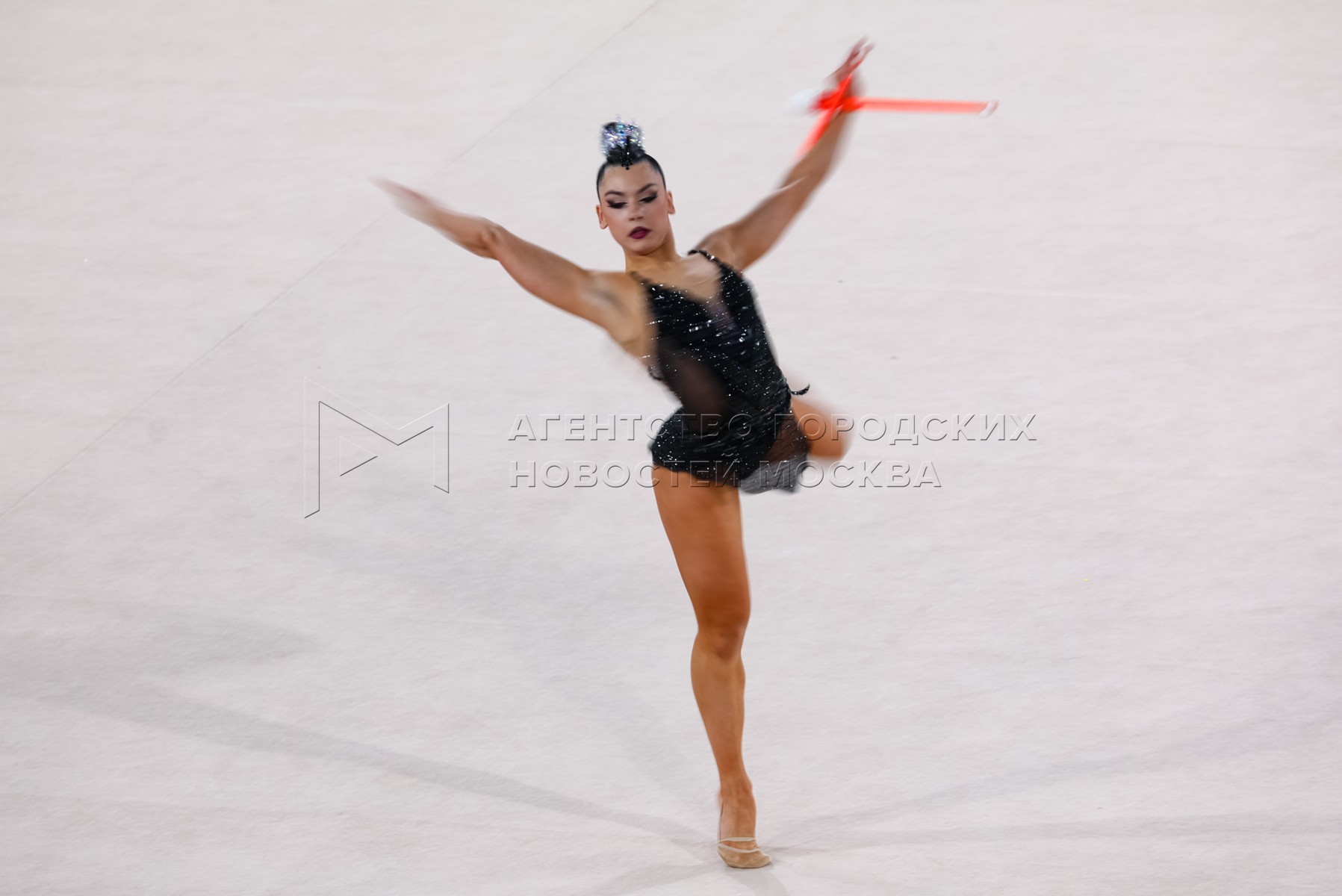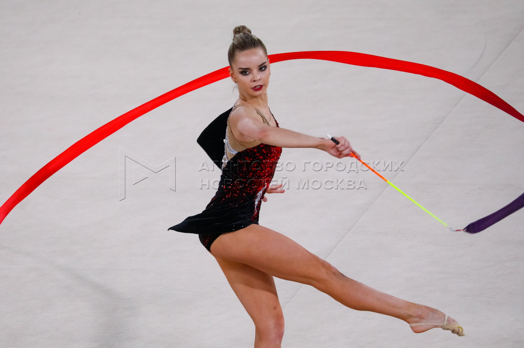 Гимнастка Дина Аверина во время финала соревнований по художественной гимнастике ...