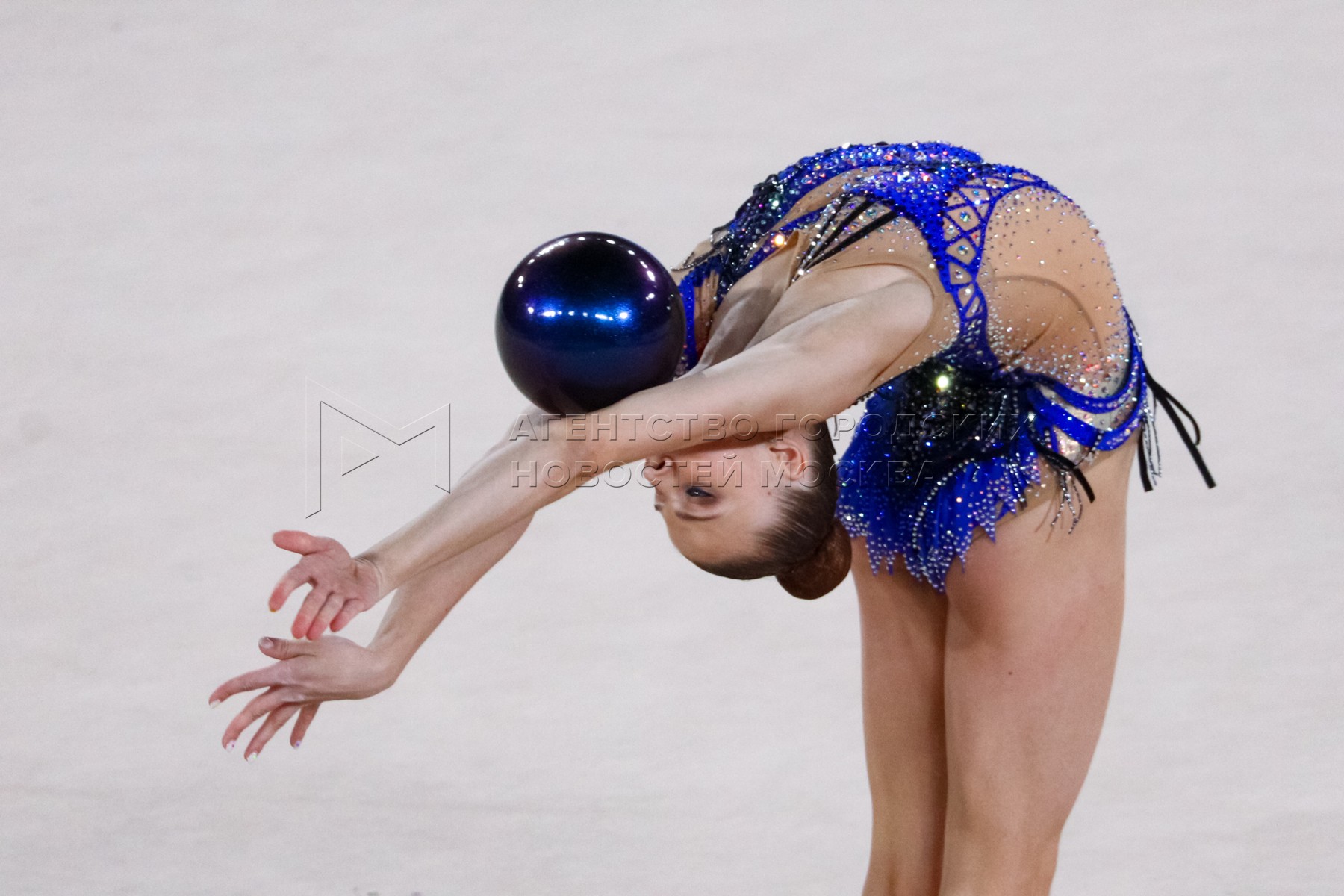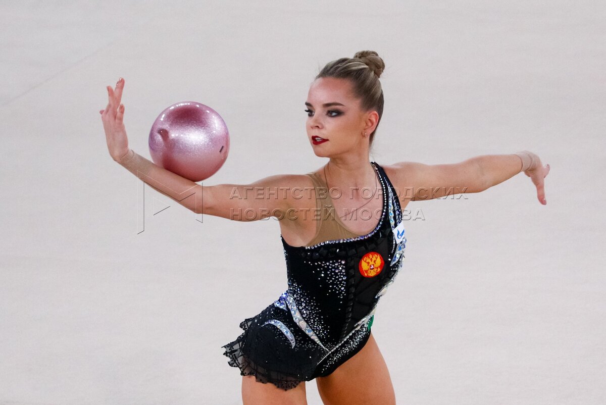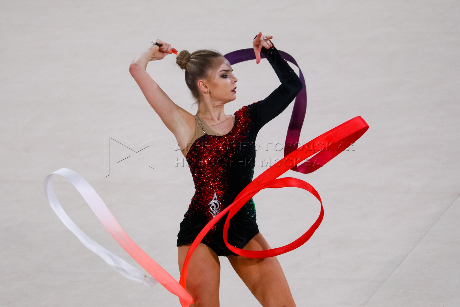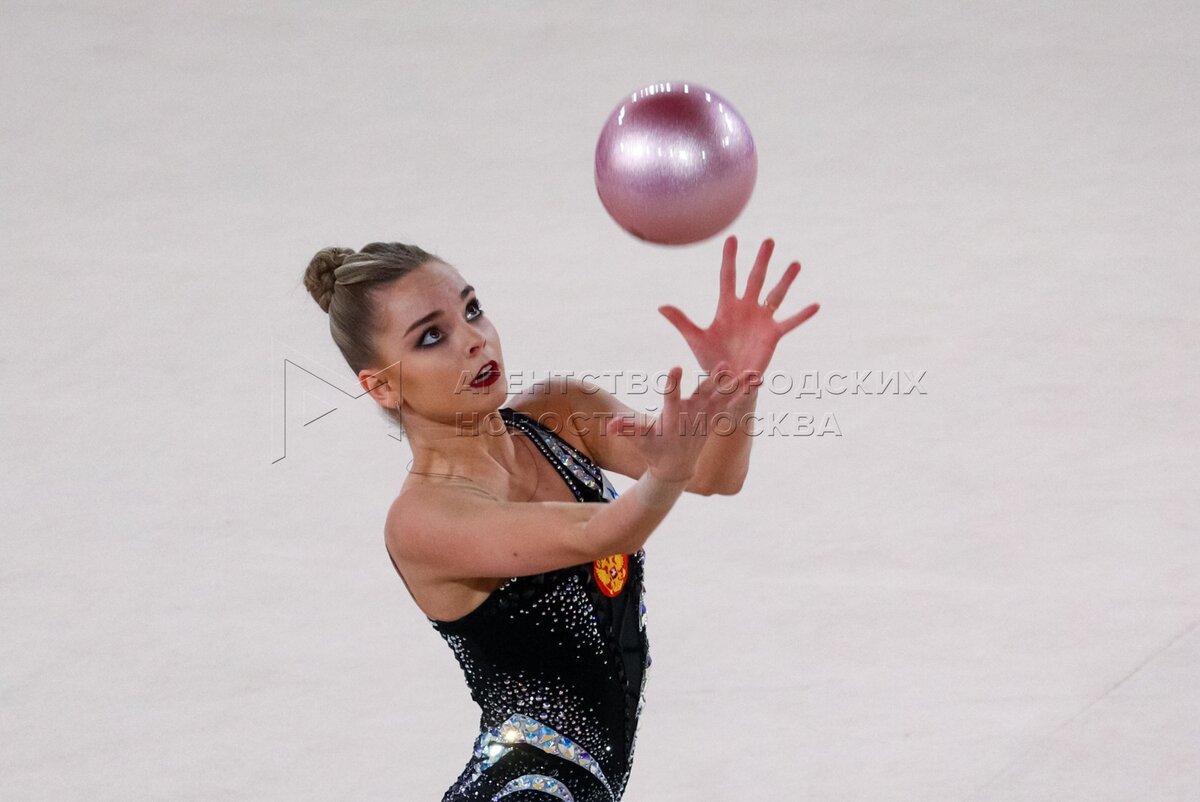 Гимнастка Дина Аверина во время финала соревнований по художественной гимнастике ...