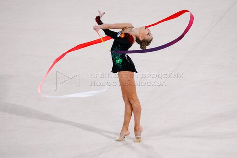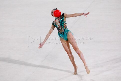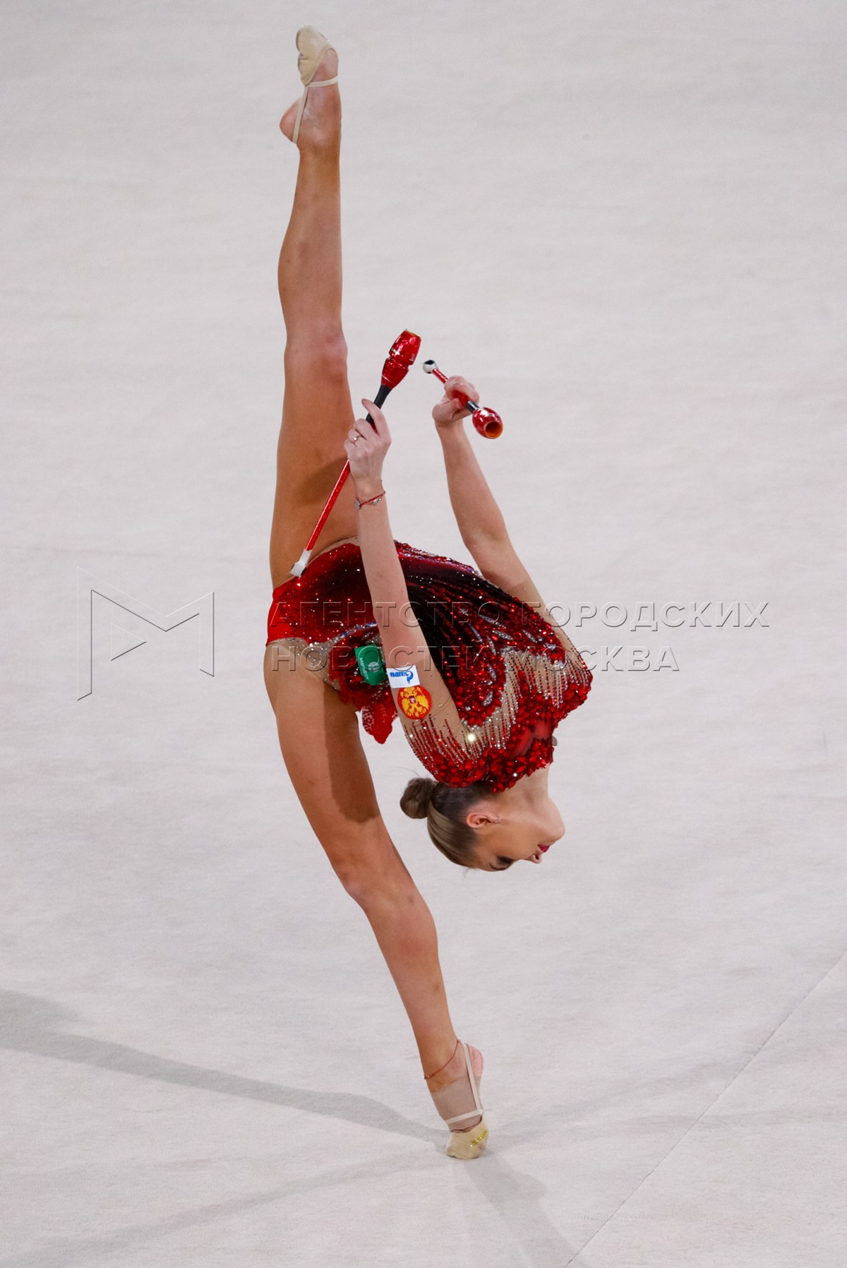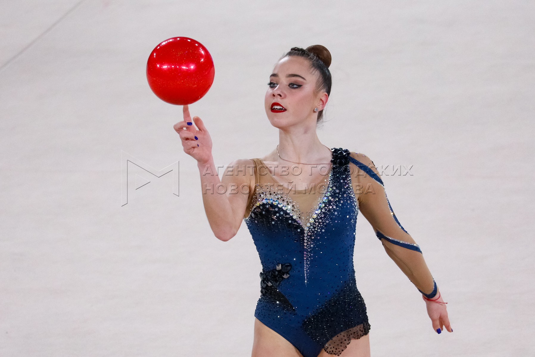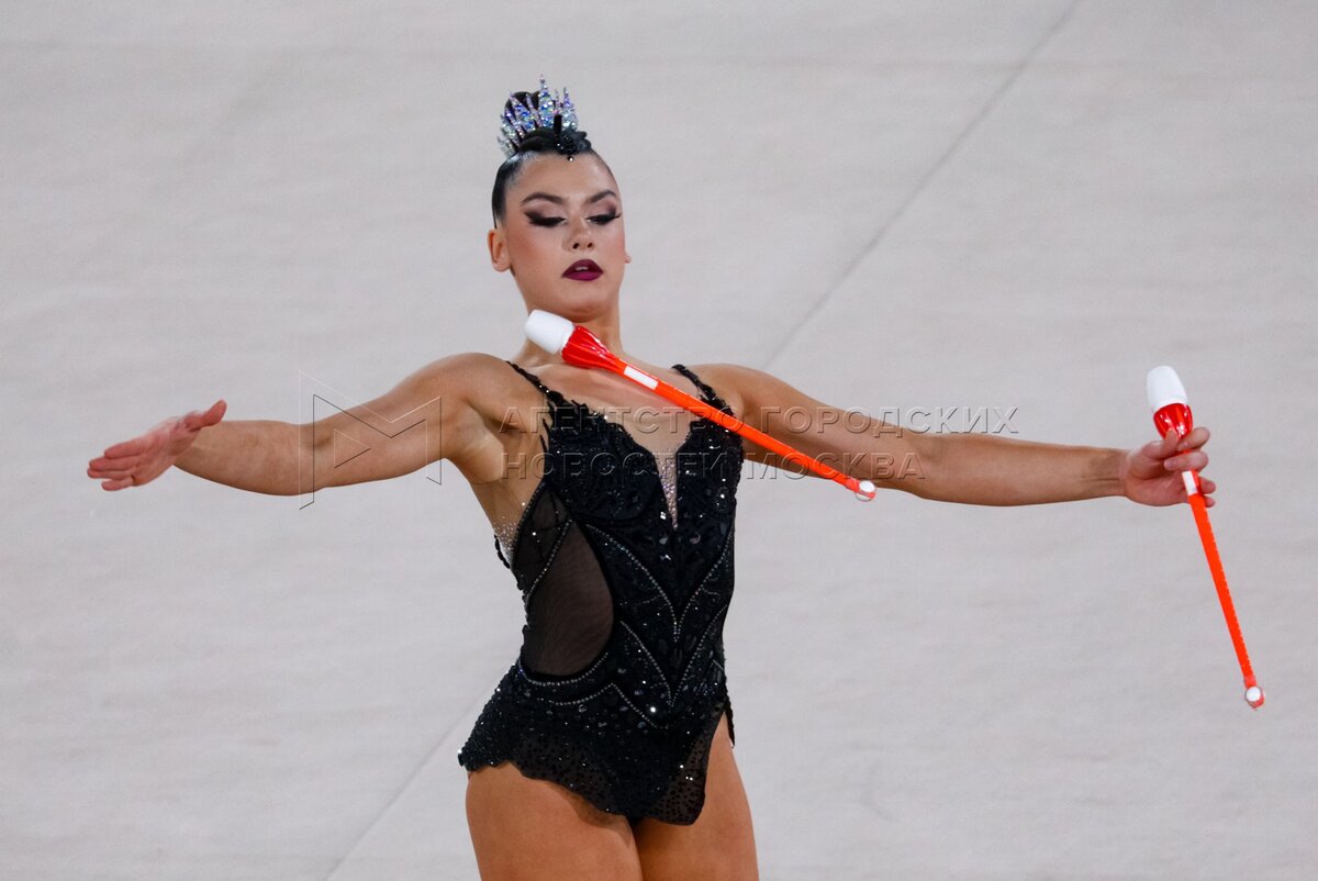 Гимнастка Дина Аверина во время финала соревнований по художественной гимнастике ...