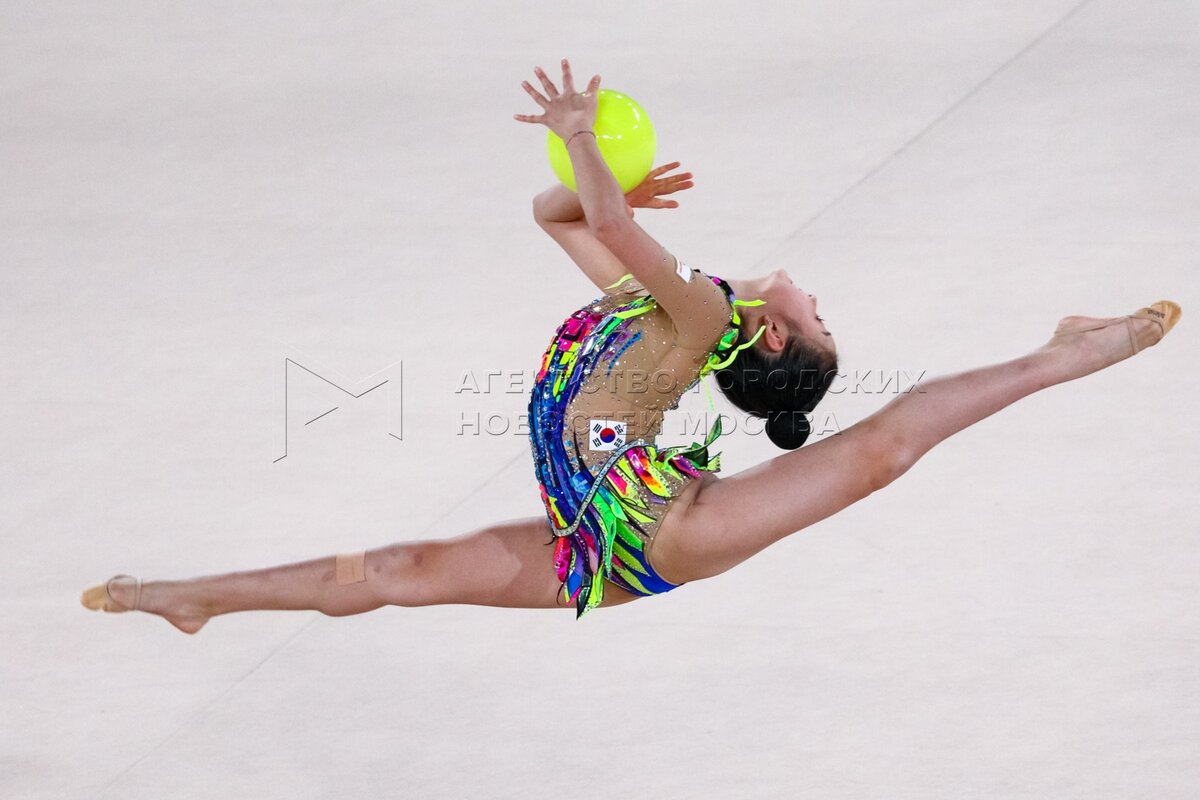 • Описание: Гимнастка Дже Сон (Южная Корея) во время финала соревнований по художественной гимнастике «Гран-при Москва 2023».