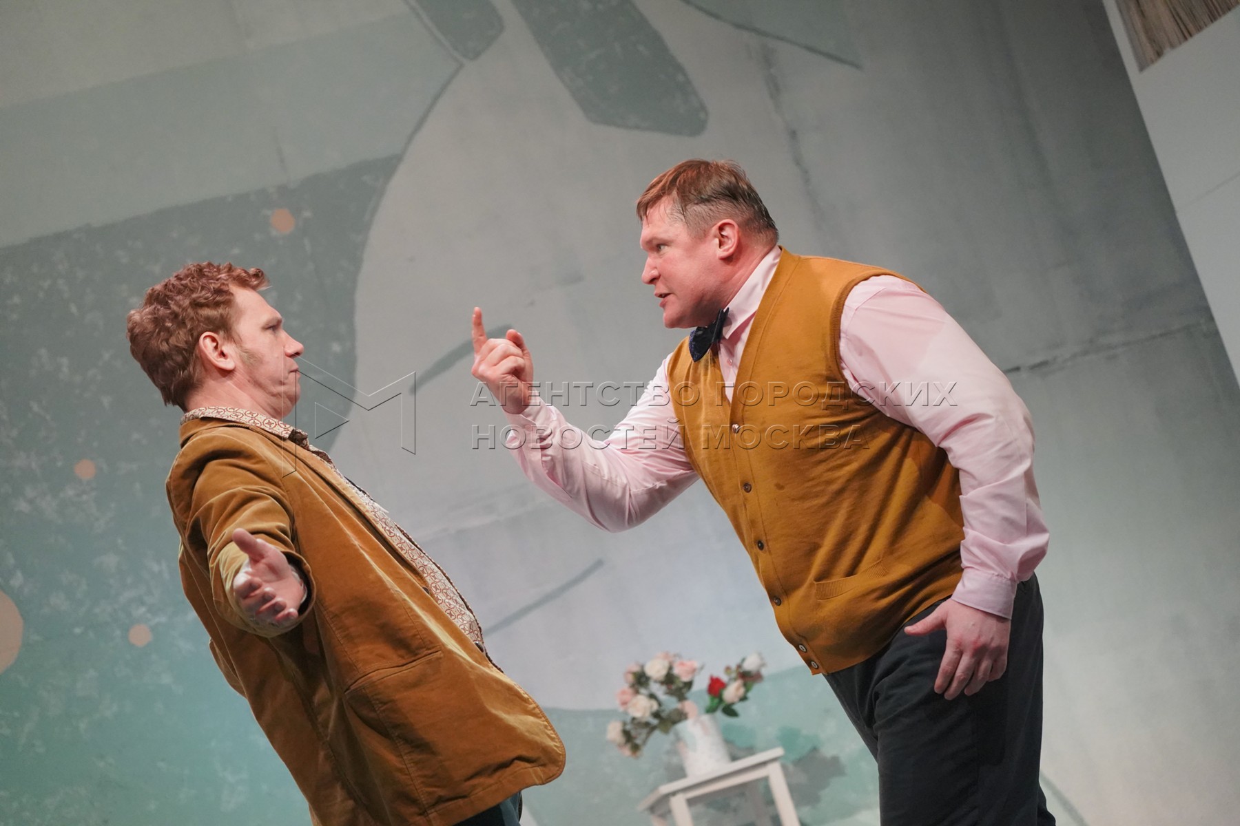 Актер Иван Мамонов в роли Мишеля (справа) во время показа спектакля «Час тишины» ...