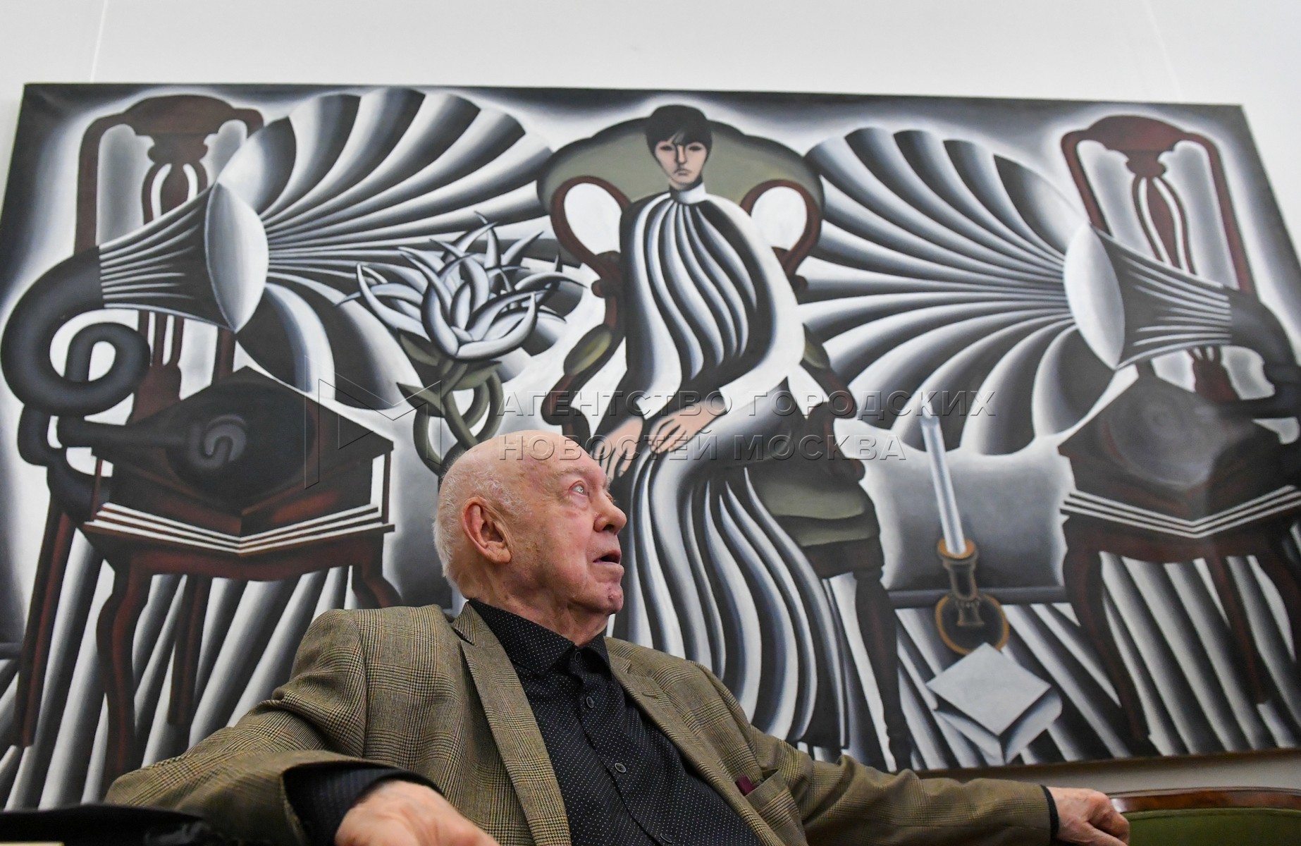- Описание: Президент ассоциации художников театра, кино и телевидения Москвы Борис Мессерер во время открытия своей выставки живописи и графики «Темы и вариации» в Российской академии художеств.