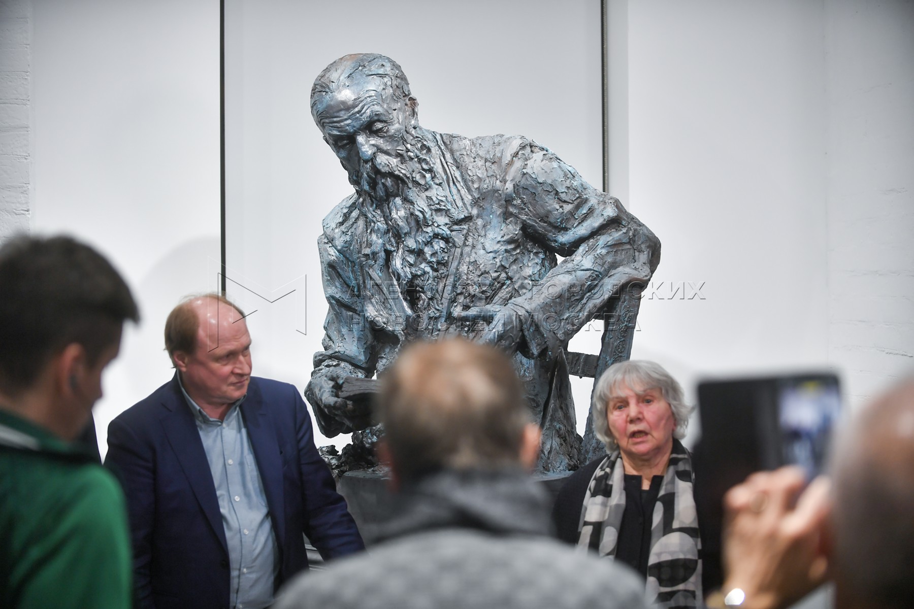 Автор скульптуры, академик РАХ Айдын Зейналови и вдова Н.Толстого, лингвист, докт...