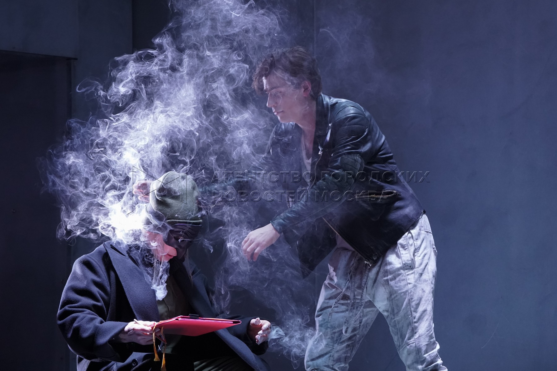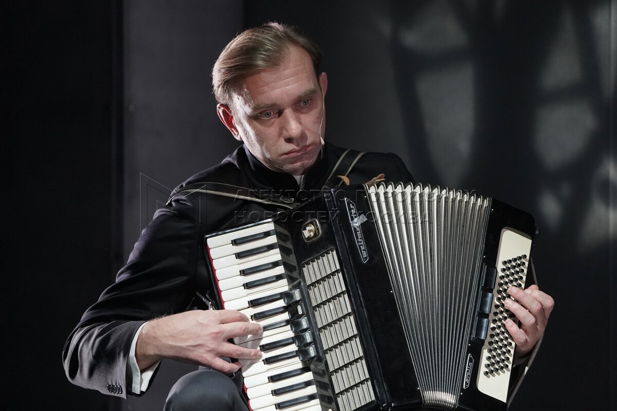 Актеры Лариса Богословская в роли Скирины (слева) и Никита Худяков во время показ...