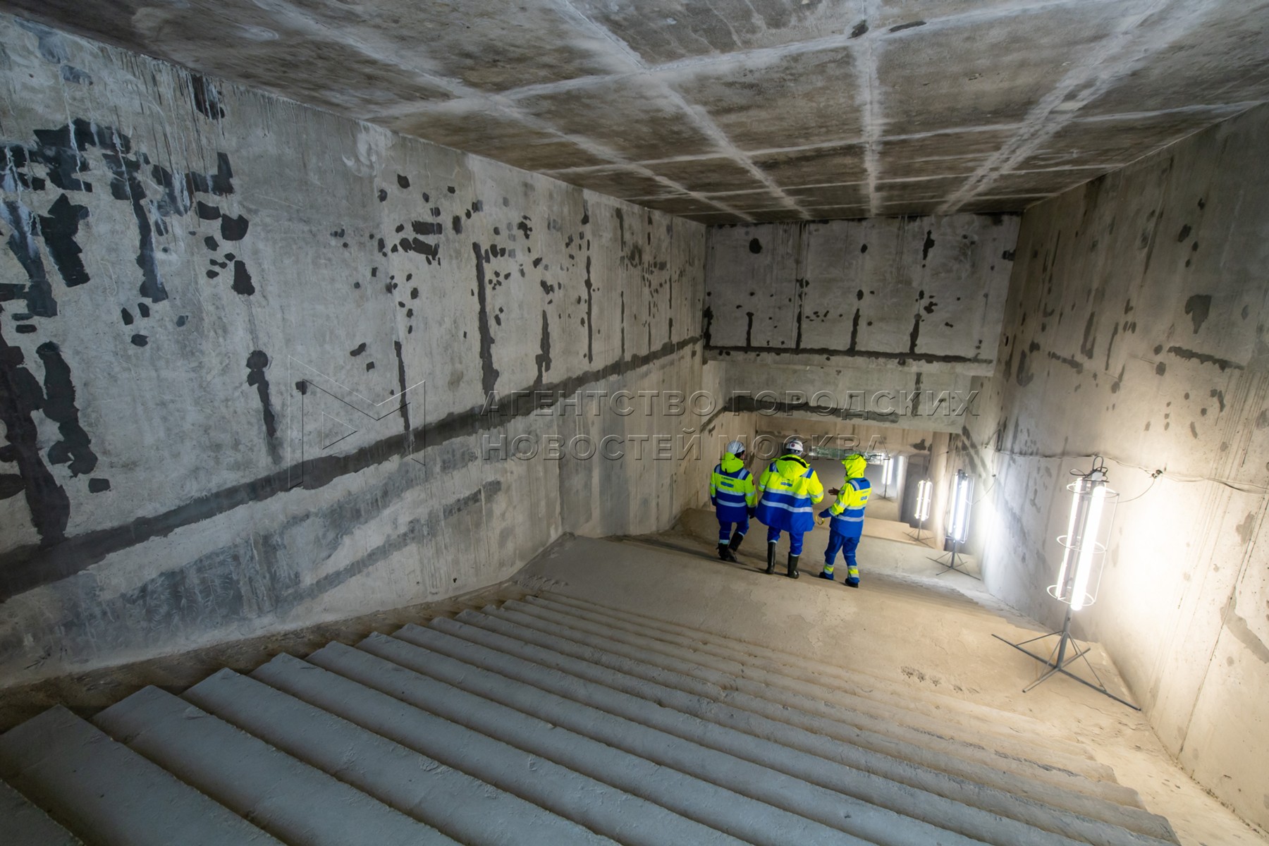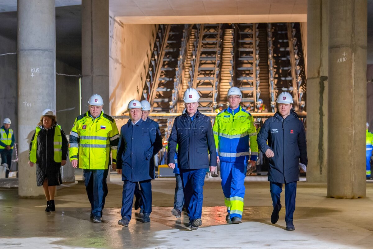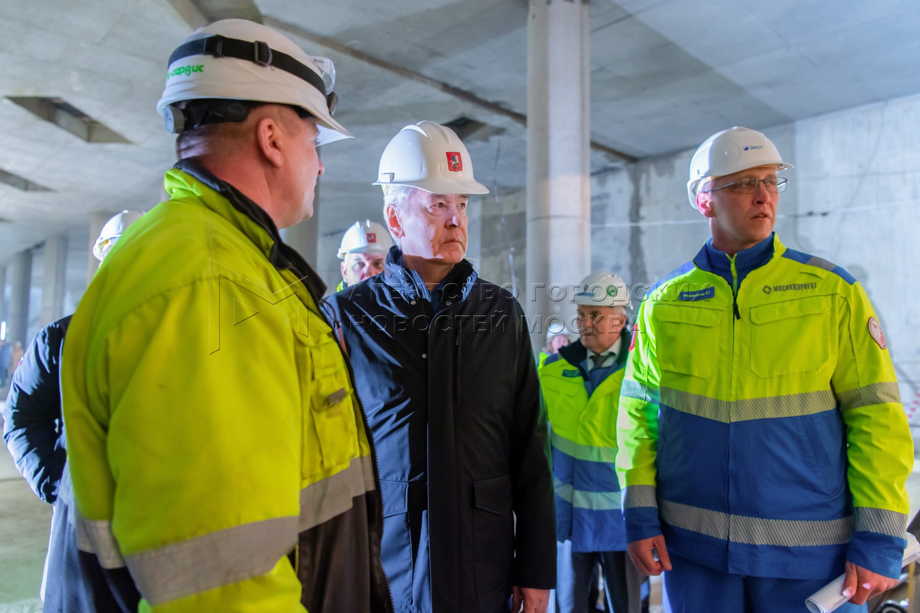 Мэр Москвы Сергей Собянин во время осмотра строящейся станции «Генерала Тюленева»...