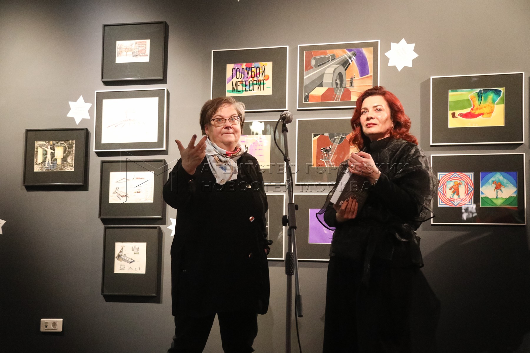 Дочь режиссера фильма «Москва-Кассиопея» Ричарда Викторова – Анна Викторова (слева) и директор Музея кино Лариса Баженова во время открытия выставки «На пыльных тропинках далеких планет...» в Музее кино на ВДНХ.