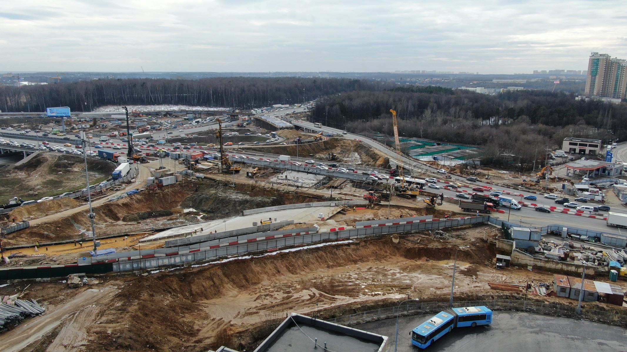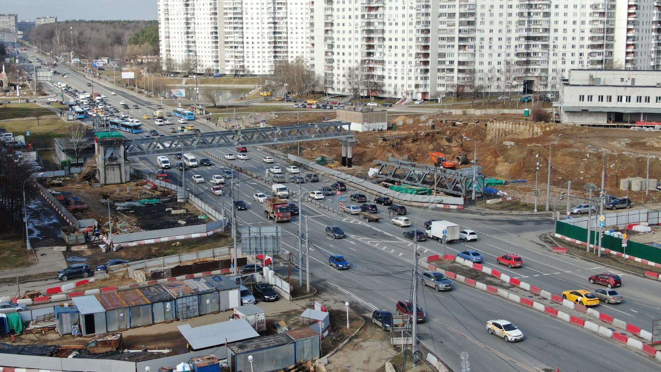 • Описание: Вид с квадрокоптера на ход реконструкции транспортной развязки МКАД с Липецкой улицей и трассой М-4 «Дон» на юге Москвы.