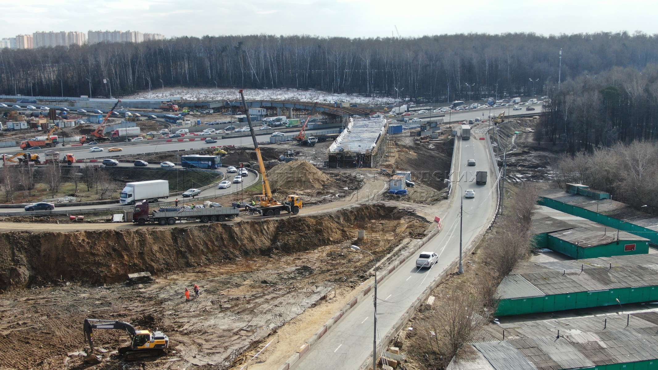 Вид с квадрокоптера на ход реконструкции транспортной развязки МКАД с Липецкой ул...