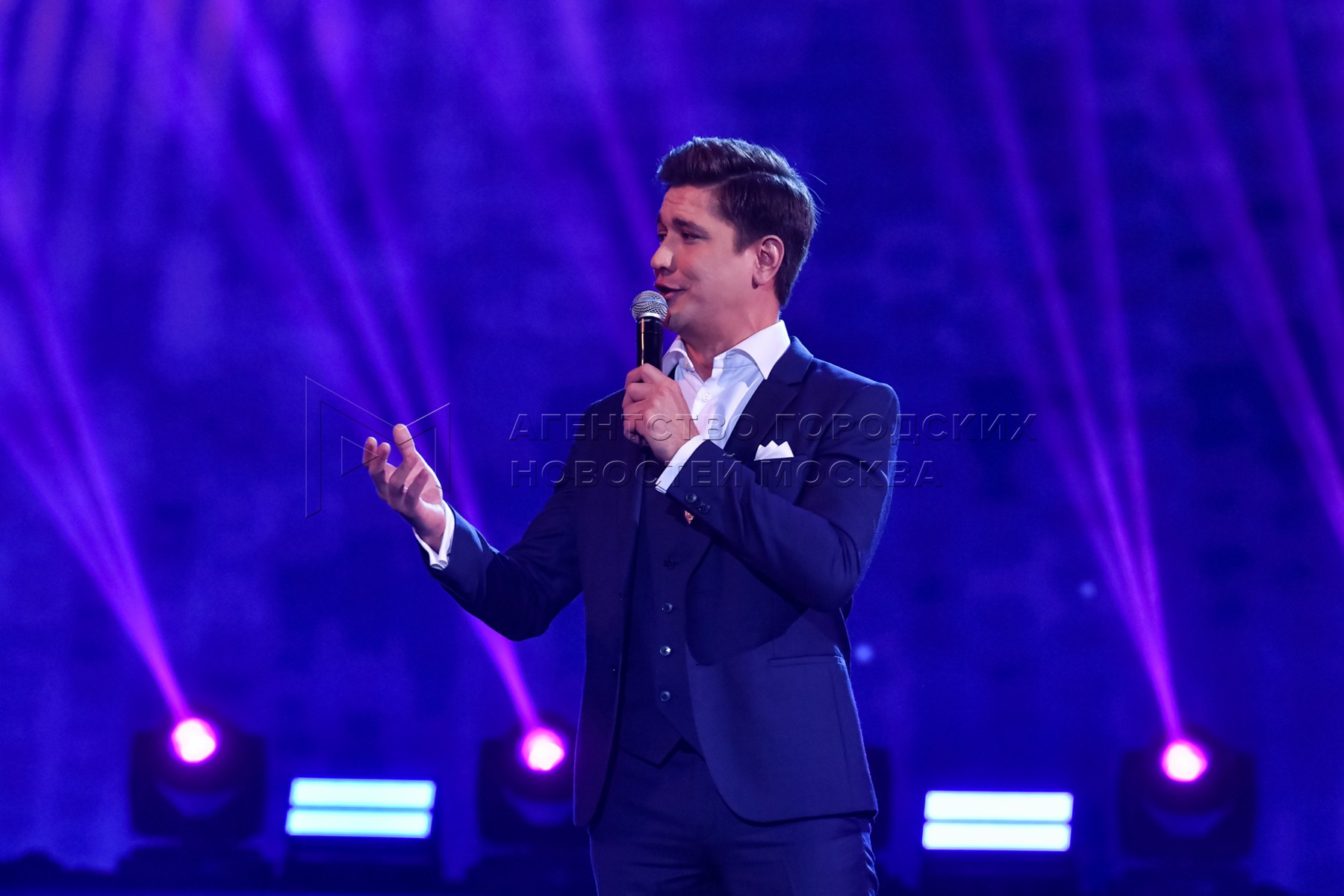 Певец Григорий Чернецов во время выступления на юбилейном концерте Ильи Резника н...