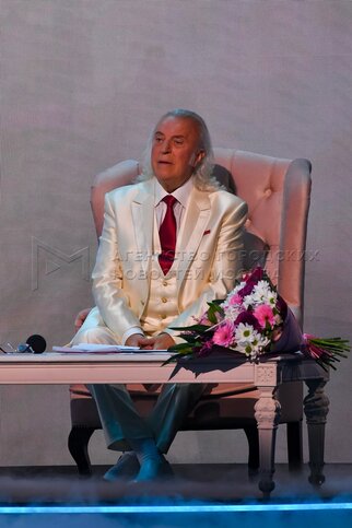 Поэт Илья Резник во время своего Юбилейного концерта на сцене Crocus City Hall.