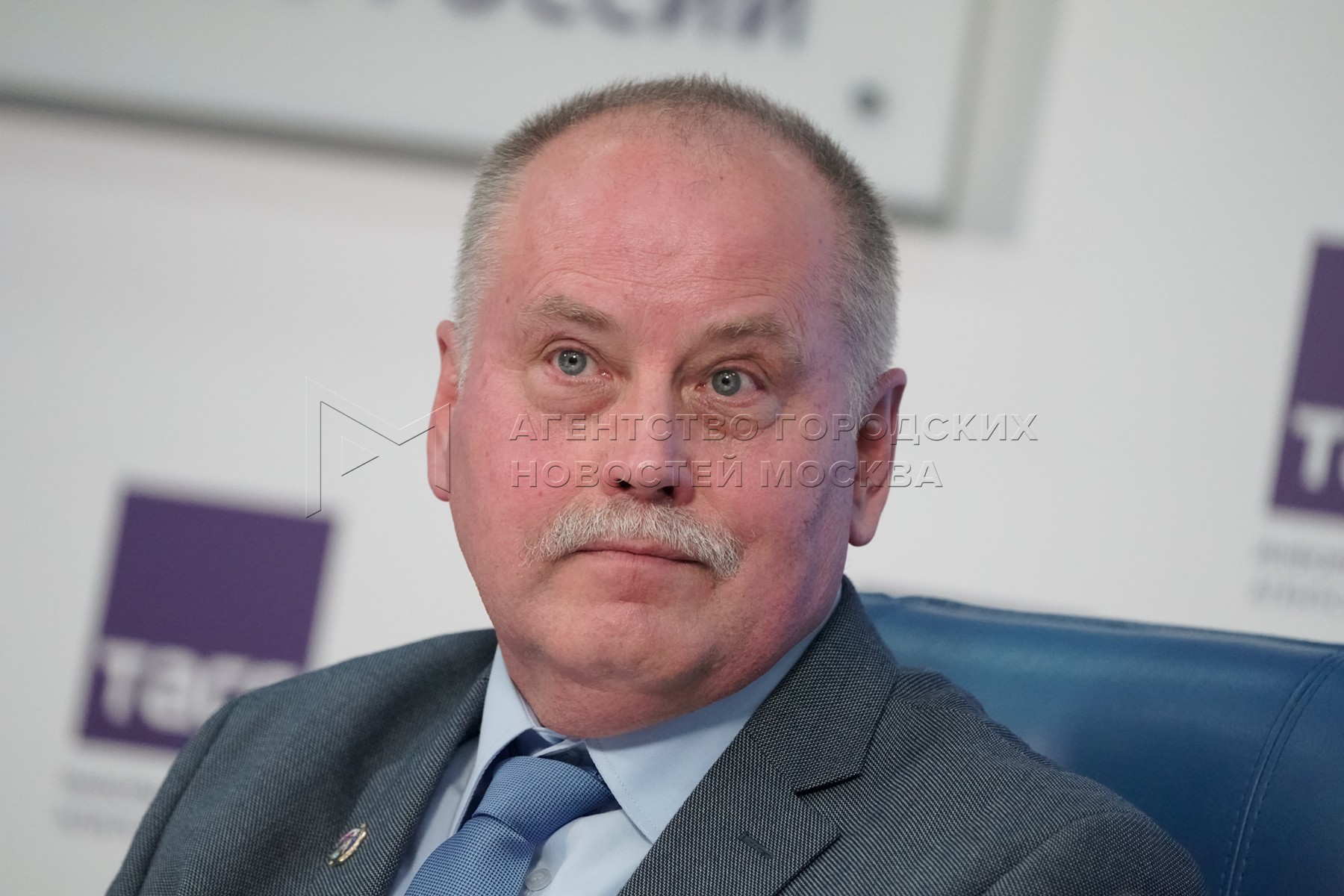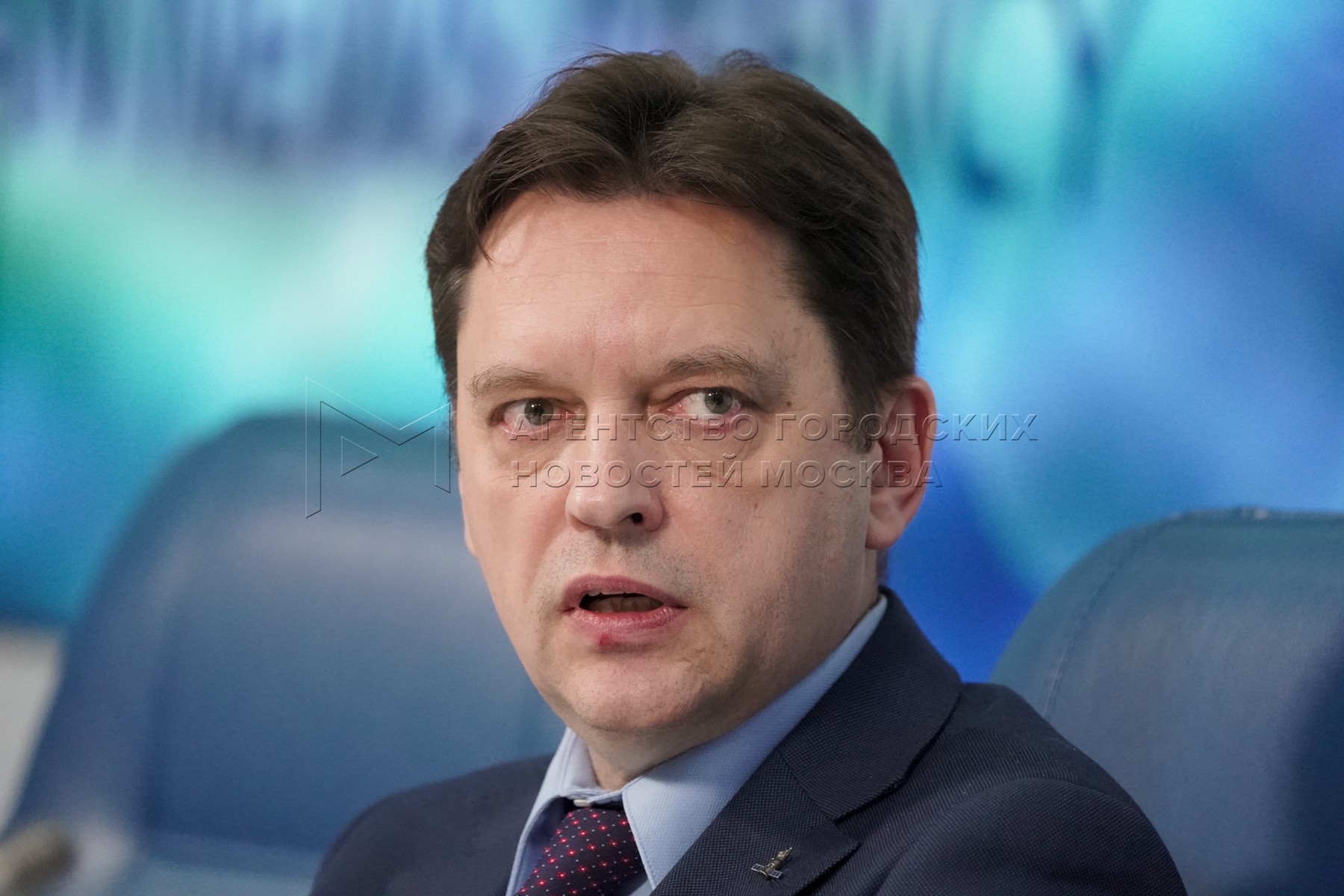 Начальник Центра подготовки космонавтов Максим Харламов во время пресс-конференци...